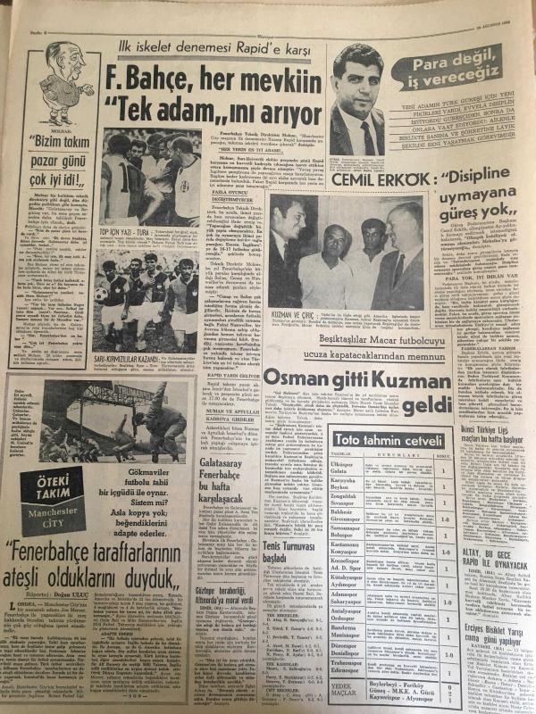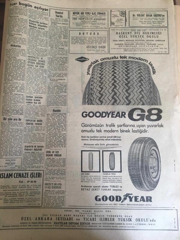 HÜRRİYET GAZETESİ 20 AĞUSTOS 1968 YIL :21 SAYI :7297---Hamido :Eşkiyalık yaparken daha rahattım ---Korkuyorum :Yine Silahlanıp dağa mı çıkayım ?--Van da hastane açan Demirel e doktorsuzluktan şikayet edildi ---Makarios : Kıbrıs meselesi yeni bir safhaya girdi dedi ----Bir ara ile aynı kamyona çarpan iki oto da dört kişi öldü ----Sessiz sinemanın seks bombası Mae West uzun yıllar sonra 76 yaşında yeni bir filmde rol alacak ---Fenerbahçe ,her mevkin tek adam ını arıyor ---Cemil Erkök : Disipline uymayana güreş yok ---Osman gitti Kuzman geldi --Fenerbahçe taraftarlarının ateşli olduklarını duyduk ---Dünyanın en küçük Go-Kart sürücüsü henüz 4 yaşında ---New York ta inşa edilen çarşıda 58 dükkan var ---Toto da 13 bilen 3 kişi 115 er bin lira alacak --42 Ülkenin katıldığı İzmir Fuarı Bugün açılıyor ---Jet Bakan Türk Doktorları Yurda Davet Etmek Üzere Amerika ya Gidiyor --- Yıpranma, sararmalar, kupon kesiği ve yırtılmalar zamana bağlı olarak görülebilir.
