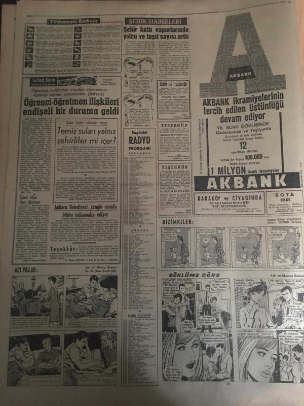 HÜRRİYET GAZETESİ 20 EKİM 1965 YIL :18 SAYI :6277--Demirel :Orduyu siyasete sokmak günahtır --7 senede 70 bin kilometre yol yürüyen Fransız İstanbul a geldi ---Ürgüplü :Hava Güzel Buyurup Gelsinler ---Hükümetin ilk işi genel af çıkarmak ---Bakiye oyların hesabında bir hata yapılmış --Maraş ta ki kaza da ölü sayısı 14 oldu --Sabıkalı hırsız ,otomobiline atlayan sivil polisleri iskele meydanında beş dakika sürükledi ---Türk işçisinin tehlikeler içinde Bulgaristan dan kaçırdığı kız İstanbul da evlenmekten vazgeçti ---Bölükbaşı Gazetecilere Sitem Etti --Ümit Takımı Bugün Romanya ya gidiyor --Yenal ,Milli Takımdaki Değişiklikten Habersiz ---A Milli Takımızın son hazırlık maçını bugün Gençlerbirliği takımı ile yapıyor ---Yaramaz Mavruk Amerika da alim oldu ---Çilli prenses Selameti kaçmakta buldu -- adlı eser, Kitap > Süreli Yayınlar > Gazeteler > Türkiye > Genel > Günlük kategorisinde İkinci El olarak satıştadır.