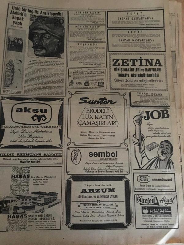 HÜRRİYET GAZETESİ 21 ARALIK 1968 YIL :21 SAYI :7420-İzmir,Gazino,Tam sayfa fotoğraflı reklam--Bayramda sağanak halinde yağış olacak -- Bugün fezaya fırlatılacak 3 astronot ayın etrafında yirmi saat dönecek -- İnce Memed 'in ikinci cildini Hürriyet satın aldı --Ayın Fethi için son adım atılıyor --Ünlü bir İngiliz Ansiklopedisi Atatürk 'ü kapak yaptı --Galatasaray zor günün kucağında -- Fenerbahçe'nin beki Özcan manken oldu -- Altınordu , kuvvetli rakibi Lubliana ile bu gece oynuyor -- Kaleci Varol 'un son numarası :Hacca gitmek ---Bir Fransız mecmuası Yılmaz Şen 'i Türkiye 'nin en iyi futbolcusu seçti ---Fuar Ekici Benelüks 'te : Yıldıray Çınar , Şükran Ay , Şen Bahriyeler , Gülüstan Okan ,Nevzat Guyer ---Erzurumlu flütçü Sadık Harika sanatçı ilan edildi ---İzmir de bir yer altı geçidi var ama kullanan yok --, SEDAT SİMAVİ tarafından kaleme alınmıştır. Kitap 1968 yılında [HÜRRİYET MATBAA] yayınlanmıştır. 16 sayfadır. HÜRRİYET GAZETESİ 21 ARALIK 1968 YIL :21 SAYI :7420-İzmir,Gazino,Tam sayfa fotoğraflı reklam--Bayramda sağanak halinde yağış olacak -- Bugün fezaya fırlatılacak 3 astronot ayın etrafında yirmi saat dönecek -- İnce Memed 'in ikinci cildini Hürriyet satın aldı --Ayın Fethi için son adım atılıyor --Ünlü bir İngiliz Ansiklopedisi Atatürk 'ü kapak yaptı --Galatasaray zor günün kucağında -- Fenerbahçe'nin beki Özcan manken oldu -- Altınordu , kuvvetli rakibi Lubliana ile bu gece oynuyor -- Kaleci Varol 'un son numarası :Hacca gitmek ---Bir Fransız mecmuası Yılmaz Şen 'i Türkiye 'nin en iyi futbolcusu seçti ---Fuar Ekici Benelüks 'te : Yıldıray Çınar , Şükran Ay , Şen Bahriyeler , Gülüstan Okan ,Nevzat Guyer ---Erzurumlu flütçü Sadık Harika sanatçı ilan edildi ---İzmir de bir yer altı geçidi var ama kullanan yok -- adlı eser Türkçe dilindedir.