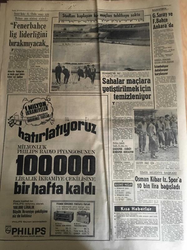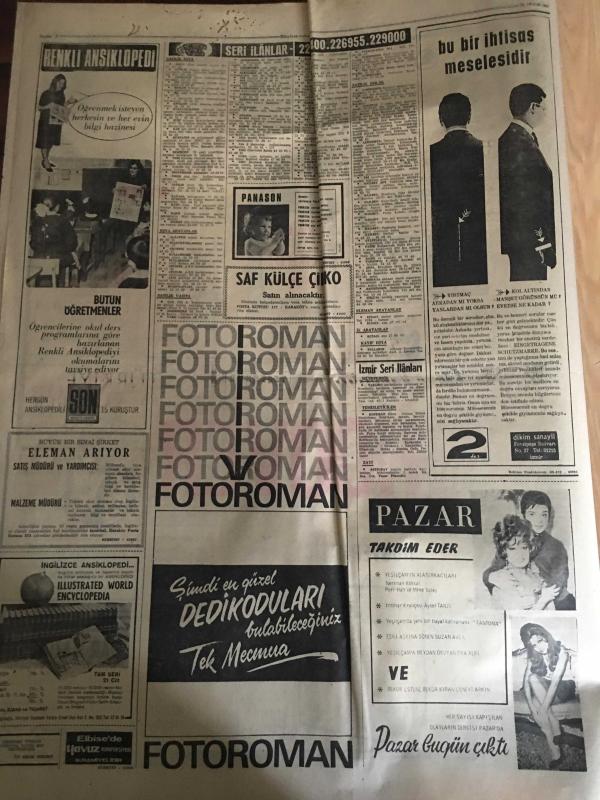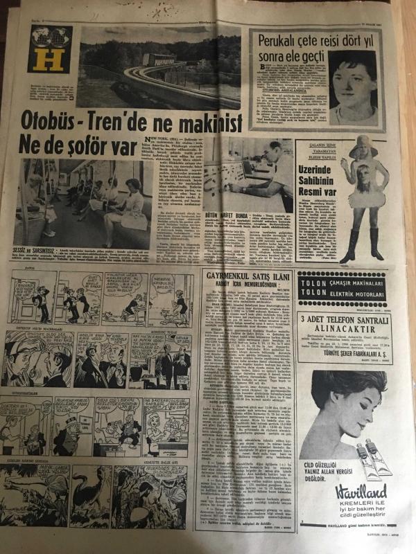HÜRRİYET GAZETESİ 23 ARALIK 1967 YIL :20 SAYI :7061--Gangster Vural ile 3 Katil Bulunamadı --Karakış bütün Anadolu da büyük hasara ve kazalara sebep oldu --Fırtına Adana da Ağaçlar Söktü ---İzmit körfezi kısmen dondu ---Polislerin başına dert olan azılı koç ,geceyi nezarethane de geçirdi ---Karışıklık çıkan Ünye ve cezaevinde müdür ile iki gardiyan yaralandı ---Liz Taylor :Zayıflama iletine tutulan kadın bir sinir demeti haline geldi ---Fenerbahçe lig liderliğini bırakmayacak --Galatasaray ve Fenerbahçe Ankara da---Sahalar maçlara yetiştirilmek için temizleniyor --Osman Kibar İz.Spor a 10 Bin Lira Bağışladı ---Perukalı çete reisi dört yıl sonra ele geçti --Otobüs -Tren de Ne Makinist Ne de Şoför Var --- adlı eser, Kitap > Süreli Yayınlar > Gazeteler > Türkiye > Genel > Günlük kategorisinde İkinci El olarak satıştadır.