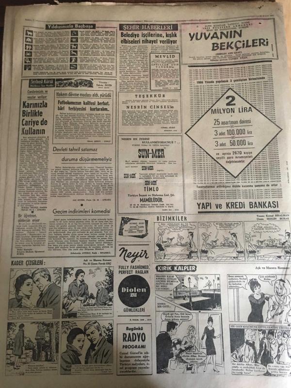 HÜRRİYET GAZETESİ 23 ŞUBAT 1966 YIL :18 SAYI :6401---Servet Transferi Önleyen Tasarı Kabul Edildi ---Akıl hastası iki kız mahkeme kararı ile kısırlaştırılıyor ---Öğrencilerin bıçak ve sopalı kavgalarında 7 ağır yaralı var ---Toto da 12 bilenler 20 bin alacak ---Tatvan Yatılı Bölge Okulunun Açıklaması --Ahmet İbrahimoğlu paramı döviz olarak getirirsem milyonlarca lira zararım olur diyor ---İki çocuklu yakışıklı imamı metresi kaçırmış --Avukat olacaklar iki yıllık stajdan sonra bir imtihana tabi tutulacaklar --Tekel Bakanı bazı milletvekilleri de kaçak sigara ve viski içiyor dedi ---Hristiyanlık propagandası yapan iki Amerikalı kız linç edilmekten zor kurtuldu ---Belediye işçilerine kışlık elbiseleri nihayet veriliyor --Oswald ın eski karısı Kennedy yi vuran tüfeği bir petrolcüye satmış ---Fenerbahçe Camiasında Yine Emektar Molnar İsteniyor --G.Kılıç :Karşımızda kamçılanmış bir Fenerbahçe bulacağız dedi ---Samsunspor ve İzmirspor takımları hükmen mağlup --- Yıpranma, sararmalar, kupon kesiği ve yırtılmalar zamana bağlı olarak görülebilir.