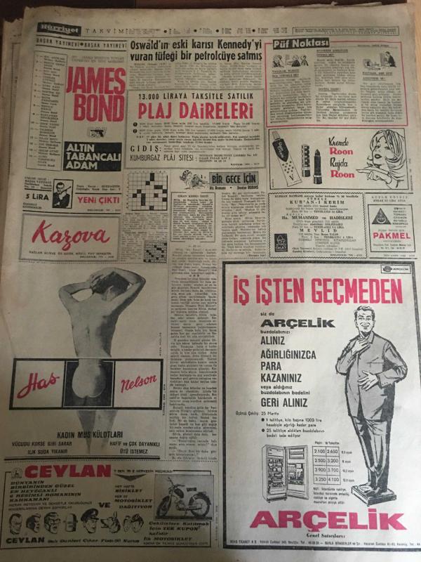 HÜRRİYET GAZETESİ 23 ŞUBAT 1966 YIL :18 SAYI :6401---Servet Transferi Önleyen Tasarı Kabul Edildi ---Akıl hastası iki kız mahkeme kararı ile kısırlaştırılıyor ---Öğrencilerin bıçak ve sopalı kavgalarında 7 ağır yaralı var ---Toto da 12 bilenler 20 bin alacak ---Tatvan Yatılı Bölge Okulunun Açıklaması --Ahmet İbrahimoğlu paramı döviz olarak getirirsem milyonlarca lira zararım olur diyor ---İki çocuklu yakışıklı imamı metresi kaçırmış --Avukat olacaklar iki yıllık stajdan sonra bir imtihana tabi tutulacaklar --Tekel Bakanı bazı milletvekilleri de kaçak sigara ve viski içiyor dedi ---Hristiyanlık propagandası yapan iki Amerikalı kız linç edilmekten zor kurtuldu ---Belediye işçilerine kışlık elbiseleri nihayet veriliyor --Oswald ın eski karısı Kennedy yi vuran tüfeği bir petrolcüye satmış ---Fenerbahçe Camiasında Yine Emektar Molnar İsteniyor --G.Kılıç :Karşımızda kamçılanmış bir Fenerbahçe bulacağız dedi ---Samsunspor ve İzmirspor takımları hükmen mağlup ---, SEDAT SİMAVİ tarafından kaleme alınmıştır. Kitap 1966 yılında [HÜRRİYET MATBAA] yayınlanmıştır. 8 sayfadır. HÜRRİYET GAZETESİ 23 ŞUBAT 1966 YIL :18 SAYI :6401---Servet Transferi Önleyen Tasarı Kabul Edildi ---Akıl hastası iki kız mahkeme kararı ile kısırlaştırılıyor ---Öğrencilerin bıçak ve sopalı kavgalarında 7 ağır yaralı var ---Toto da 12 bilenler 20 bin alacak ---Tatvan Yatılı Bölge Okulunun Açıklaması --Ahmet İbrahimoğlu paramı döviz olarak getirirsem milyonlarca lira zararım olur diyor ---İki çocuklu yakışıklı imamı metresi kaçırmış --Avukat olacaklar iki yıllık stajdan sonra bir imtihana tabi tutulacaklar --Tekel Bakanı bazı milletvekilleri de kaçak sigara ve viski içiyor dedi ---Hristiyanlık propagandası yapan iki Amerikalı kız linç edilmekten zor kurtuldu ---Belediye işçilerine kışlık elbiseleri nihayet veriliyor --Oswald ın eski karısı Kennedy yi vuran tüfeği bir petrolcüye satmış ---Fenerbahçe Camiasında Yine Emektar Molnar İsteniyor --G.Kılıç :Karşımızda kamçılanmış bir Fenerbahçe bulacağız dedi ---Samsunspor ve İzmirspor takımları hükmen mağlup --- adlı eser Türkçe dilindedir.