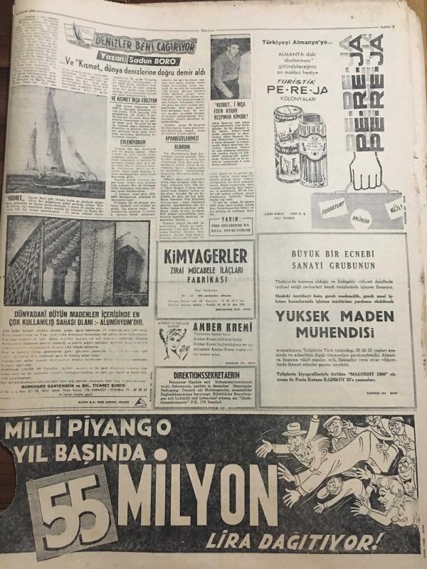 HÜRRİYET GAZETESİ 26 ARALIK 1965 YIL :18 SAYI :6344--Rumların piyasadaki faaliyeti ele alındı ---Farını söndürmeyen kamyon 6 kişinin ölümüne sebep oldu ---Sadun Boro kimdir --İstanbul da sağ -salim dönmek acaba nasip olacak mı ?--Japonlar ,kalkınmak için eğitime önem verin dedi --Kırık kanatlı talih kuşu bir emekliye 6 bin lira kazandırdı ---Amerikan nın verdiği 26 jet uçağı dün İzmir e geldi--Tütün bir çok erkekte kansere sebep oluyor ---Beşiktaş ,İzmirspor a puan verdi :1-1--İstanbulspor yine mağlup oldu :1-0--Göztepe Feriköy den dün zor kurtuldu --:1-1--D.Spor :3 Beykoz :0---Denktaş ,Kıbrıs Krizini hükümet kati şekilde halledecek dedi ---Sular idaresi tenkid ediliyor --Ulay ,Genel Müdürlerinin Tayinlerini Tenkit Etti --Sofya dan Bursa ya geldi ve kimsenin haberi bile olmadı ---, SEDAT SİMAVİ tarafından kaleme alınmıştır. Kitap 1965 yılında [HÜRRİYET MATBAA] yayınlanmıştır. 12 sayfadır. HÜRRİYET GAZETESİ 26 ARALIK 1965 YIL :18 SAYI :6344--Rumların piyasadaki faaliyeti ele alındı ---Farını söndürmeyen kamyon 6 kişinin ölümüne sebep oldu ---Sadun Boro kimdir --İstanbul da sağ -salim dönmek acaba nasip olacak mı ?--Japonlar ,kalkınmak için eğitime önem verin dedi --Kırık kanatlı talih kuşu bir emekliye 6 bin lira kazandırdı ---Amerikan nın verdiği 26 jet uçağı dün İzmir e geldi--Tütün bir çok erkekte kansere sebep oluyor ---Beşiktaş ,İzmirspor a puan verdi :1-1--İstanbulspor yine mağlup oldu :1-0--Göztepe Feriköy den dün zor kurtuldu --:1-1--D.Spor :3 Beykoz :0---Denktaş ,Kıbrıs Krizini hükümet kati şekilde halledecek dedi ---Sular idaresi tenkid ediliyor --Ulay ,Genel Müdürlerinin Tayinlerini Tenkit Etti --Sofya dan Bursa ya geldi ve kimsenin haberi bile olmadı --- adlı eser Türkçe dilindedir.