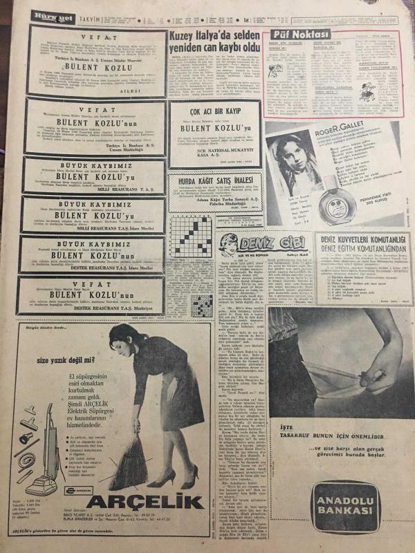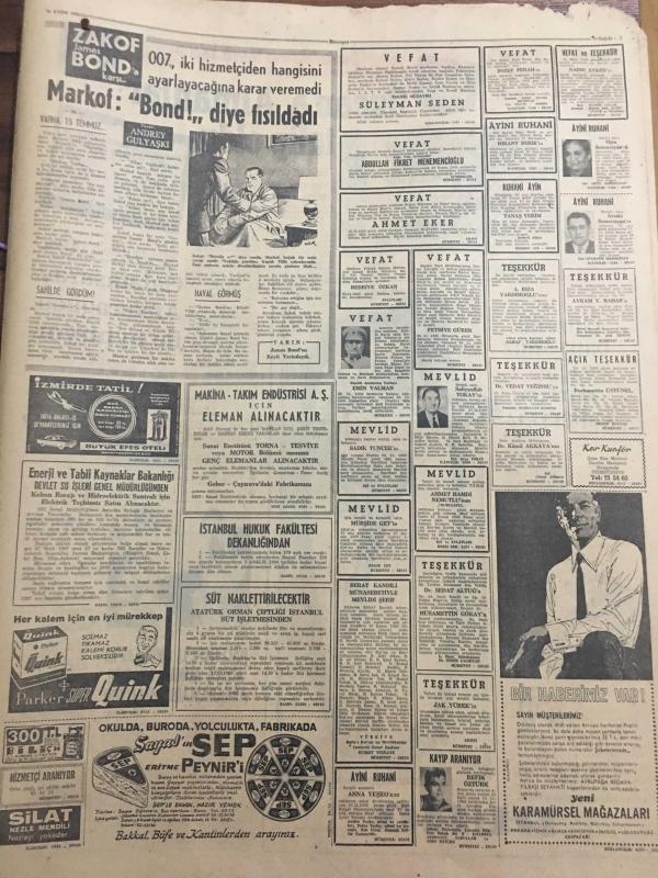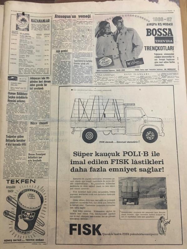 HÜRRİYET GAZETESİ 26 KASIM 1966 YIL :19 SAYI :6674--Bir Alman Komiseri Dün Münih te 3 Türkü Vurdu ---107 Gün süren yolculuğun tadını çıkarmak için herkes bir sevgili buluyor ---İnönü ,Bayan Demirel e mandalina ikram ederken kabuklarını bile soydu ---Grevciler Akdeniz Fabrikası sahibinin arabasını taşa tuttu ---Düzce cinayeti ile ilgili bir şahıs nezarete alındı ---MP Mebusları Meclisi Terk Etti ---Dolmuşlar rasgele indirme ve bindirme yapamayacak ---Kuzey İtalya da selden yeniden can kaybı oldu ---Gegiç :Altay ı yenmemiz normal dedi --Özcan a Almanlar Talip Oldu ---Galatasaray Ankaragücü ile oynuyor ---Hacettepeli Onursal ın alçıya alınan ayağını arkadaşları imzalıyor ---I Corvi Gözde Gruplar Arasına Girdi ---Artık pazarları evimizde olacağız --Elimiz böğrümüzde evde koca bekliyoruz ---Nuran Aksoy çok dertli --Günde bin kişi intihar ediyor ---Kızına tecavüz etmek isteyen genci öldürdü ---Teknikerler için karar pazartesiye veriliyor --, SEDAT SİMAVİ tarafından kaleme alınmıştır. Kitap 1966 yılında [HÜRRİYET MATBAA] yayınlanmıştır. 8 sayfadır. HÜRRİYET GAZETESİ 26 KASIM 1966 YIL :19 SAYI :6674--Bir Alman Komiseri Dün Münih te 3 Türkü Vurdu ---107 Gün süren yolculuğun tadını çıkarmak için herkes bir sevgili buluyor ---İnönü ,Bayan Demirel e mandalina ikram ederken kabuklarını bile soydu ---Grevciler Akdeniz Fabrikası sahibinin arabasını taşa tuttu ---Düzce cinayeti ile ilgili bir şahıs nezarete alındı ---MP Mebusları Meclisi Terk Etti ---Dolmuşlar rasgele indirme ve bindirme yapamayacak ---Kuzey İtalya da selden yeniden can kaybı oldu ---Gegiç :Altay ı yenmemiz normal dedi --Özcan a Almanlar Talip Oldu ---Galatasaray Ankaragücü ile oynuyor ---Hacettepeli Onursal ın alçıya alınan ayağını arkadaşları imzalıyor ---I Corvi Gözde Gruplar Arasına Girdi ---Artık pazarları evimizde olacağız --Elimiz böğrümüzde evde koca bekliyoruz ---Nuran Aksoy çok dertli --Günde bin kişi intihar ediyor ---Kızına tecavüz etmek isteyen genci öldürdü ---Teknikerler için karar pazartesiye veriliyor -- adlı eser Türkçe dilindedir.