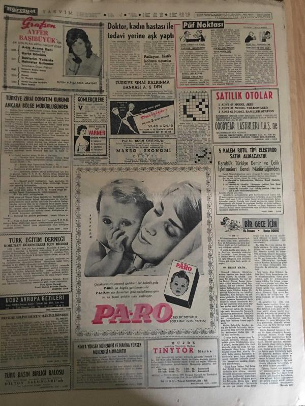 HÜRRİYET GAZETESİ 26 MAYIS 1966 YIL :19 SAYI :6490---Tasarruf Bonosu Satışı Önlenecek ---İlk eleme sınavları dün bütün yurtta yapıldı --Liseli 2 sevgili buluştukları gün tren altında kalıp öldü --Kızıl Çin den gelen son atom bulutu tehlike yaratmadan geçip gitti ---Balıkçılar denizde boğazı eşarpla sıkılı bir kız cesedi buldu ---Bir kadın tarafından dolandırılanların ifade vermesi 3 saat sürdü ---Vehbi Koç evrak çantasını evde unutunca uçak 20 dakika gecikti ---Doktor ,kadın hastası ile tedavi yerine aşk yaptı ---Fenerbahçe ve Galatasaray Kampa Giriyor --Eskişehirspor -Bursaspor karşılaşması için sıkı tedbirler alınıyor ---Devlet Bakanı K.Ocak ,Bursaspor un kararı için kendileri bilirler dedi ---Lefter ağır konuştu ---Jean Straker Türkiye ye gelip Çıplak Resmi Çekecek --Otobüs kazasında 21 kişi can verdi ---Demirel seçim gezisine cumartesi günü başlıyor ----, SEDAT SİMAVİ tarafından kaleme alınmıştır. Kitap 1966 yılında [HÜRRİYET MATBAA] yayınlanmıştır. 8 sayfadır. HÜRRİYET GAZETESİ 26 MAYIS 1966 YIL :19 SAYI :6490---Tasarruf Bonosu Satışı Önlenecek ---İlk eleme sınavları dün bütün yurtta yapıldı --Liseli 2 sevgili buluştukları gün tren altında kalıp öldü --Kızıl Çin den gelen son atom bulutu tehlike yaratmadan geçip gitti ---Balıkçılar denizde boğazı eşarpla sıkılı bir kız cesedi buldu ---Bir kadın tarafından dolandırılanların ifade vermesi 3 saat sürdü ---Vehbi Koç evrak çantasını evde unutunca uçak 20 dakika gecikti ---Doktor ,kadın hastası ile tedavi yerine aşk yaptı ---Fenerbahçe ve Galatasaray Kampa Giriyor --Eskişehirspor -Bursaspor karşılaşması için sıkı tedbirler alınıyor ---Devlet Bakanı K.Ocak ,Bursaspor un kararı için kendileri bilirler dedi ---Lefter ağır konuştu ---Jean Straker Türkiye ye gelip Çıplak Resmi Çekecek --Otobüs kazasında 21 kişi can verdi ---Demirel seçim gezisine cumartesi günü başlıyor ---- adlı eser Türkçe dilindedir.