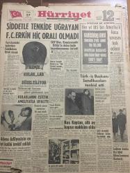 HÜRRİYET GAZETESİ 27 ARALIK 1964 YIL :17 SAYI :5985--Şiddetle tenkide uğrayan F.C.Erkin Hiç Oralı Olmadı --Yurt dışındaki işçilerimiz fabrikalara ortak olacak ---CHP liler Komisyonda Erkin 'in daha fazla hırpalanmasını önledi ---Kulaklarını estetik ameliyatla ufalttı ---Her yıl 185 bin Amerikalı koca yuvasını terk ediyor ---Türk -İş Başkanı Sendikacıları Tenkid Etti --Rus Kaptan altı ay hapse mahkum oldu --Adana Adliyesinin En İyi Katibi Tevkif Edildi ---Radyo Programları --Robot insanın denemesi yapıldı ---Batan Titanik e yardım edebilirdik ---Gömülmesinden 39 yıl sonra ölen hükümdar ---Aşka başka flört başka ---Denizlerin dibi artık bizim olacak --İsveç e gidip Ericsson da çalışmayan Türk yoktur ---Arçelik :Her yuvaya sağlık ve konfor diler ---Fenerbahçe 80 . dakika da galip :1-0---Portekiz Milli Maçı İçin Can Davet Edilmeyecek ---G.Birliği Beykoz a şans tanımadı :2-1----Kasımpaşa M.Yolaç tan Yardım İstedi ---Loğusa kadın kız iğfal eden kocasını kurtardı ---- adlı eser, Kitap > Süreli Yayınlar > Gazeteler > Türkiye > Genel > Günlük kategorisinde İkinci El olarak satıştadır.