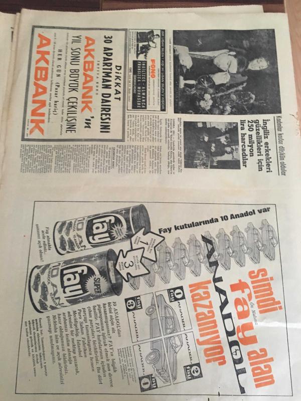 HÜRRİYET GAZETESİ 29 ARALIK 1968 YIL :21 SAYI 7426----Hürriyet 'in Türk edebiyatına armağanı : İnce Memed :Yaşar Kemal ---Eli tabancalı çılgın turist 7 kişiyi vurdu ----Sel Felaketi :Ölü sayısı 26 'ya çıktı ----Alarm :Seyhan nehri tehlikeli şekilde yükseliyor -----Nazmiye Hanımın çilesi :Başbakan hanımı olmak -----Boşanma sebepleri üzerinde yapılan yeni araştırmalar ---Nijerya'nın petrol kavgası yüzünden patlak veren bir ayaklanma----TİP kongresinin ilk raundunda aybarcılar galip ----Halk ozanı talibi Güllüşah 'a talip oldu ---Los Paraguayos Orkestrası İstanbullu kabadayıları dövünce silahlar konuştu ----Irak 'ta başkan Arif 'i deviren 5 kumandan emekli oldu --- Yıpranma, sararmalar, kupon kesiği ve yırtılmalar zamana bağlı olarak görülebilir.