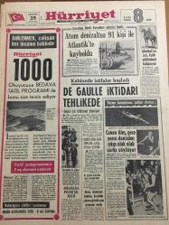 HÜRRİYET GAZETESİ 29 MAYIS 1968 YIL :21 SAYI :7214--Atom denizaltısı 91 kişi ile Atlantik te kayboldu --De Gaulle iktidarı tehlikede ---Canan Ateş ,gece yarısı denizden çıkıp ıslak ıslak şarkı söylüyor ---Partilerin ağır topları atışa devam ediyor---Haraç alamayan Hakimo ,kaçırdığı şahsın gözünü oyup boynunu vurdu ---İstanbul un 515 .Fetih Yıldönümü Kutlanıyor ---Belçika da 300 bin kadın patron var ---Benfica M.United ---Galatasaray kampında sıkı yönetim ---İkinci devre klasmanında Vefa lig üçüncüsü oldu ---Beşiktaşlılar ,Yusuf için 500 bin lira istedi ---Fenerbahçe kampa girdi AEK in gözü kupada ---Faruk a 200 bin lira vaadedilince Sami ben de 150 bin isterim dedi ---Tuzla da Bayramoğlu Oteli de emrinizde --İki öğrenci arasındaki şaka cinayetle bitti ---Ankara da evleri sel bastı -- Yıpranma, sararmalar, kupon kesiği ve yırtılmalar zamana bağlı olarak görülebilir.