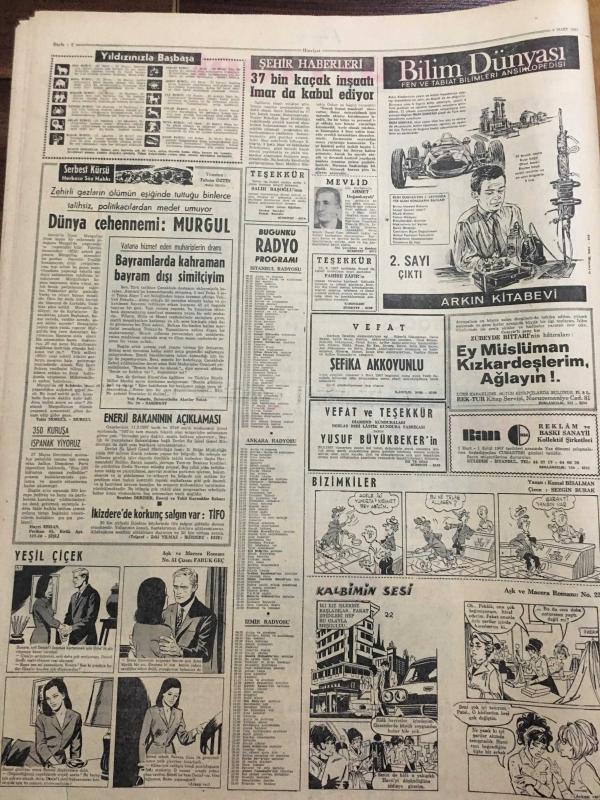 HÜRRİYET GAZETESİ 3 MART 1967 YIL :19 SAYI :6769--Demirel ,9 Bakanı Değiştiriyor --Haile Selasiye Geldi ---Altın Mikrofon Kervanı Ankara da ---Tansel : Gizli kalan hususların Millet tarafından öğrenilmesine memnunum --Bir öğretmeni ,sevdiği kızın babası öldürdü ---Bir çok doktor ilaç fabrikalarına ortak --Vehbi Koç un çıkık omuzu yerine oturtuldu ---Gangster Yılmaz ın emekli polis babası ile kardeşi de Adana da nezarete alındı --Çocuk düşürmek için kullandığı derece kırılınca genç kadın ölümden zor kurtuldu ---37 Bin kaçak inşaatı İmar da kabul ediyor ---Orta Doğu da beyaz kadın ticareti gün geçtikçe artıyor ----Beşiktaş ve Galatasaray kampta --Apak :3 .Türkiye ligini kurmayı düşünüyoruz --Real i eleyen İnter dömifinale kaldı ---Eskişehirspor Ankara ya 5 Bin Taraftarla Gidiyor --Altaylı Varol 20 Gün Ceza Aldı --Muhammed Ali Clay Yenilmediği Taktirde Önümüzdeki Yıl Boksu Bırakacak --Afrika da dost bir ülke :Habeşistan ---Demirel ,devlet çarkına hız verilmesini istedi -- adlı eser, Kitap > Süreli Yayınlar > Gazeteler > Türkiye > Genel > Günlük kategorisinde İkinci El olarak satıştadır.