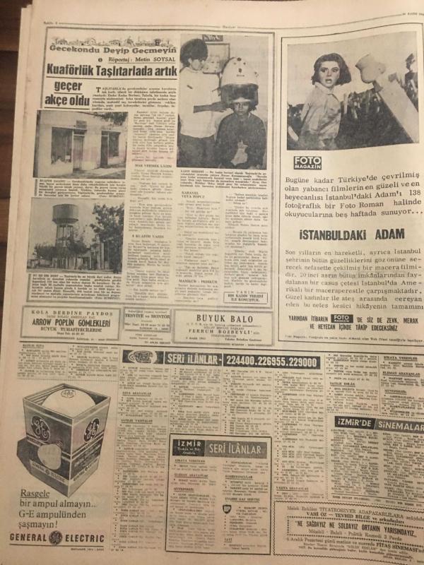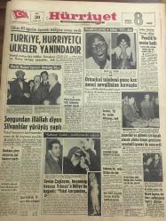 HÜRRİYET GAZETESİ 30 KASIM 1965 YIL :18 SAYI :6318---Türkiye ,Hürriyetçi ülkeler yanındadır --Soygundan illallah diyen Silvanlılar yürüyüş yaptı ---Ortaokul talebesi genç kız zenci sevgilisine kavuştu ---Pendik te motor battı ---Bankaya giren soyguncu ,pul kasasını soydu ---Sevim Çağlayan ,boşandığı kocası Yılmaz a Adliye de bağırdı :Yıkıl karşımdan ---Amerika ya gitmek için kaçak olarak şilebe binen gençlerin seyahati İspanya da sona erdi ---Mısırlı kaptan ,her hava patlayışında İzmir e düşüyor ---Ahşap binalar oda oda kiraya verilmeyecek ---Hapisaneye helikopter indirme işi suya düştü ---İzmir de sinemalar --Hold ,İzm.Sporla Anlaşıyor---Fenerbahçe ve Galatasaray ın maç hazırlığı bu sabah başlıyor ---Boğaziçi Basketbol Turnuvası ---Pendik te motor battı ---Yıldızlar arasında dizkapağı yarışı başladı --Kıbrıs konusunda CHP hükümete yardımcı olacak --Demirel ,Ek Dış Yardım Almıyoruz Dedi ---Bir THY uçağı daha pistte arızalandı -- adlı eser, Kitap > Süreli Yayınlar > Gazeteler > Türkiye > Genel > Günlük kategorisinde İkinci El olarak satıştadır.