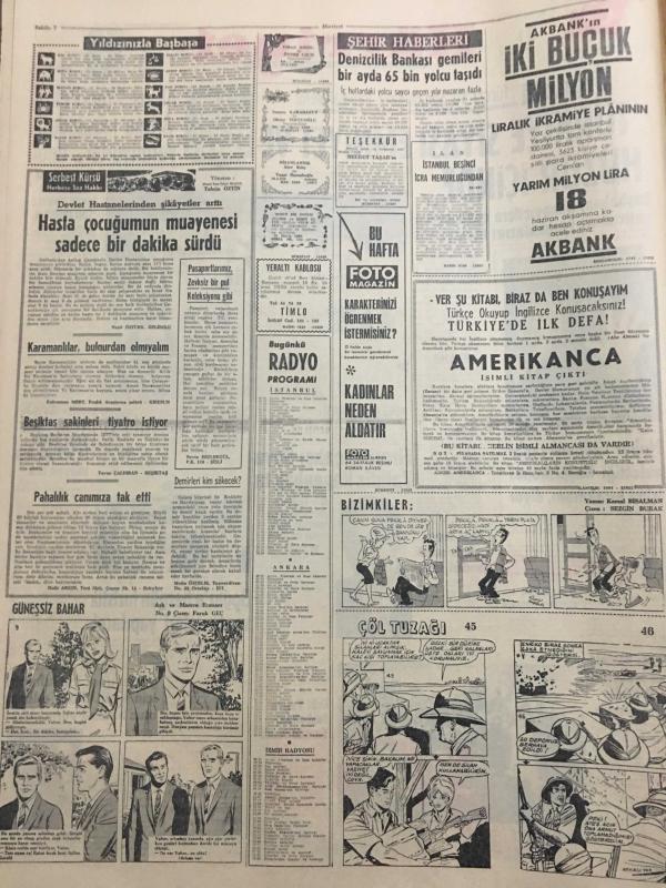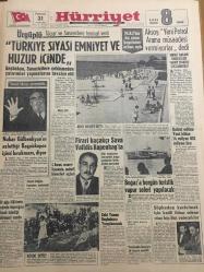 HÜRRİYET GAZETESİ 31 MAYIS 1965 YIL :18 SAYI :6135--Türkiye siyasi emniyet ve huzur içinde ---Aksoy :Yeni Petrol Arama Müsaadesi Vermiyorlar Dedi ---Nubar Gülbenkyan ın azlettiği Başpiskopos işimi bırakmam diyor ---Firari kaçakçı Sava Vafidis Kopenhag ta ---Bir ağa hakimin önünde toprağını almak istediği milyoneri vurdu ----Boğaz a her gün turistik vapur seferi yapılacak --Şüpheden kurtulmak için katili ihbar edene otuz bin lira verecekler ----Kabul edilen yeni bütçe 14 milyar 851 milyon lira ----Denizcilik Bankası gemileri bir ayda 65 bin yolcu taşıdı --Çeteciler ,iki Vietnam bölüğünü imha ettiler ---Milli Ligi Bu Yıl da Fenerbahçe Kazandı --Beykoz un ümidi arttı ---Galatasaray :1 PTT :1--- Feriköy G.Birliğini de yendi : 3-1---5. Antalya Festivaline On Film İştirak Edecek ---Jackie ,hala Amerika nın 1 numaralı kadını ---Ali Han ın sevgilsi Bettina ,foto muhabirliği ile hayatını kazanıyor --- adlı eser, Kitap > Süreli Yayınlar > Gazeteler > Türkiye > Genel > Günlük kategorisinde İkinci El olarak satıştadır.
