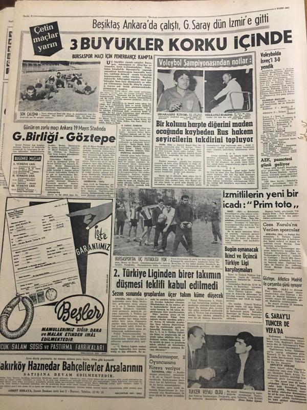 HÜRRİYET GAZETESİ 4 KASIM 1967 YIL :20 SAYI :7012---Evlenmek için Türk gencine 3 milyon lira verdi---Kudret İsmail Talay Kimdir ?--Cumhurbaşkanımız İngiliz Başbakanı Wilson la Görüştü --R.Denktaş a müebbet hapis cezası verilmesi bekleniyor ---Almanya da banka soyan gangster İstanbul da yakalandı ---67 Yaşında ki çapkın Jozef genelevde kalpten öldü ---Toprak Mahsülleri Ofisi Genel Müdür :Halkımız ekmeksiz kalmaz dedi --Rus ihtilalin ellinci yıldönümü kutlanıyor ---3 Büyükler Korku içinde --G.Birliği -Göztepe --Bir kolunu harpte diğerini maden ocağında kaybeden Rus hakem seyircilerin takdirini topluyor --İzmitlilerin yeni bir icadı : Prim toto ---2. Türkiye Liginden birer takımının düşmesi teklifi kabul edilmedi ---Bugün oynanacak ikinci ve üçüncü Türkiye ligi karşılaşmaları --Galatasaray Tuncer de Vefa --14 Yaşında ki İngiliz kızları doğumu kontrol hapı alıyor --Petrol Kralı 44 Yıl Sonra Şampiyonla Döğüştü --Demirel Mersin de 1 Milyar 329 Milyon Liralık Tesis Açacak --- adlı eser, Kitap > Süreli Yayınlar > Gazeteler > Türkiye > Genel > Günlük kategorisinde İkinci El olarak satıştadır.