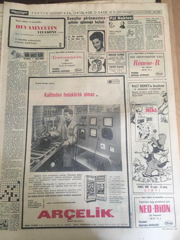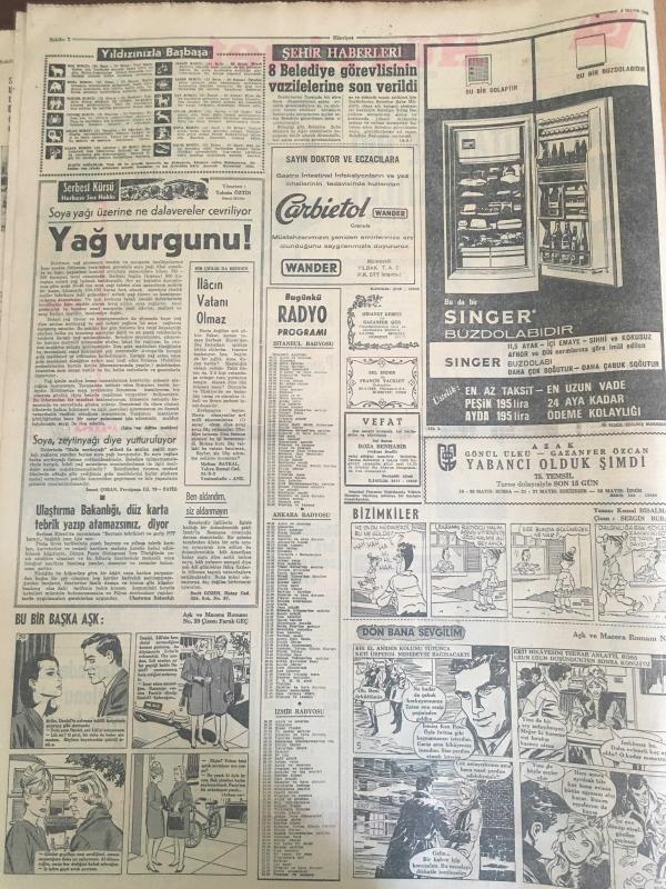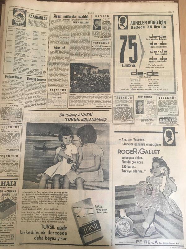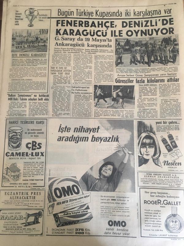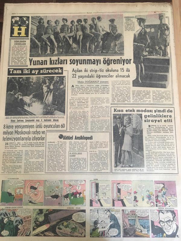 HÜRRİYET GAZETESİ 4 MAYIS 1966 YIL :19 SAYI :6468---Siyasi mütareke bir gün daha uzatıldı --Dünyayı haraca kesen Muhittin kızlar sayesinde milyonlar kazandı ---Denizli den selden on beş ev yıkıldı --Karakaçan bulununca Yaşar lar piyangodan para çıkmış gibi sevindi --Günlük kirası beş lira olan çocuk emanet evi açıldı --Donjuan Hasan Tövbekar olup cezaevinden tahliye edildi --2 Ay filmlerden uzak kalacak olan aktörün işleri altüst oldu ---Adam edemediği oğlunu ıslah evine kapatacak ---Toto da 13 bilenler 23 bin lira alacak ---8 Belediye görevlisinin vazifelerine son verildi ---Damatlar görünmeyince gelinler ağlamağa başladı ---Fenerbahçe ,Denizli de Karagücü ile oynuyor ---Balkan Şampiyonası na katılacak Milli Boks Takımı adayları belli oldu --Güreşçiler fazla kilolarını attılar --Yunan kızları soyunmayı öğreniyor --8 kere yenişemeyen ünlü oyuncuları 60 milyon Moskovalı radyo ve televizyonlarıyla izliyorlar ---Kısa etek modası şimdi de gelinlere sirayet etti --- Yıpranma, sararmalar, kupon kesiği ve yırtılmalar zamana bağlı olarak görülebilir.