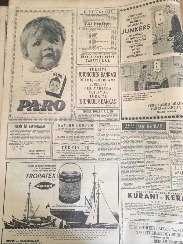 HÜRRİYET GAZETESİ 4 MAYIS 1966 YIL :19 SAYI :6468---Siyasi mütareke bir gün daha uzatıldı --Dünyayı haraca kesen Muhittin kızlar sayesinde milyonlar kazandı ---Denizli den selden on beş ev yıkıldı --Karakaçan bulununca Yaşar lar piyangodan para çıkmış gibi sevindi --Günlük kirası beş lira olan çocuk emanet evi açıldı --Donjuan Hasan Tövbekar olup cezaevinden tahliye edildi --2 Ay filmlerden uzak kalacak olan aktörün işleri altüst oldu ---Adam edemediği oğlunu ıslah evine kapatacak ---Toto da 13 bilenler 23 bin lira alacak ---8 Belediye görevlisinin vazifelerine son verildi ---Damatlar görünmeyince gelinler ağlamağa başladı ---Fenerbahçe ,Denizli de Karagücü ile oynuyor ---Balkan Şampiyonası na katılacak Milli Boks Takımı adayları belli oldu --Güreşçiler fazla kilolarını attılar --Yunan kızları soyunmayı öğreniyor --8 kere yenişemeyen ünlü oyuncuları 60 milyon Moskovalı radyo ve televizyonlarıyla izliyorlar ---Kısa etek modası şimdi de gelinlere sirayet etti --- adlı eser, Kitap > Süreli Yayınlar > Gazeteler > Türkiye > Genel > Günlük kategorisinde İkinci El olarak satıştadır.