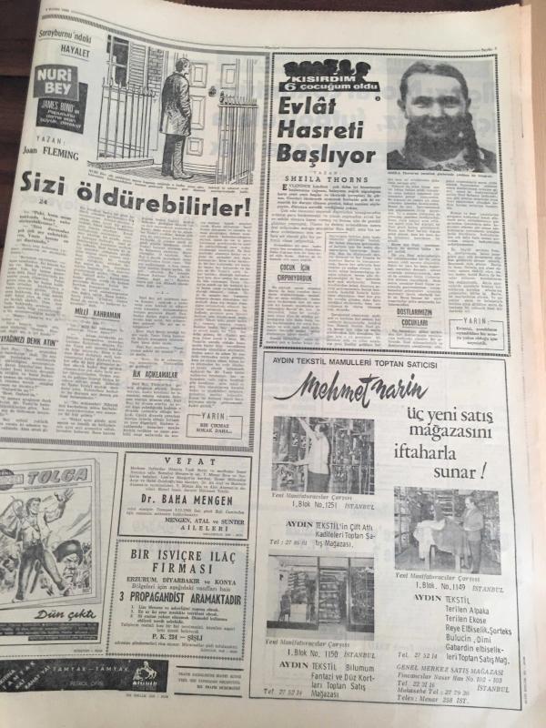 HÜRRİYET GAZETESİ 5 KASIM 1968 YIL :21 SAYI :7374----Yeni bir başkan seçiliyor :Amerika da karar günü --Demirel :Türk siyasi hayatını çıkmaza sokmak istiyorlar --Ürdün de sokak savaşı başladı --100 sabıkalı insan azmanı , iki kilo rakıyı içtikten sonra polisi vurdu --- Refi Cevat Ulunay vefat Etti ---Ilgaz : Moral çöküntüsü içindeyiz , futbolculara ceza yok --Ajax - Fenerbahçe maçını 20 bin Türk İşçisi izleyecek -----Ring de 3 başkan adayı : Humphrey , Nixon , Wallece ---Mevsimin ilk defilesi bir revü havası içinde yapıldı ---İzmir bir üniversite daha kazandı-----, SEDAT SİMAVİ tarafından kaleme alınmıştır. Kitap 1968 yılında [HÜRRİYET MATBAA] yayınlanmıştır. 8 sayfadır. HÜRRİYET GAZETESİ 5 KASIM 1968 YIL :21 SAYI :7374----Yeni bir başkan seçiliyor :Amerika da karar günü --Demirel :Türk siyasi hayatını çıkmaza sokmak istiyorlar --Ürdün de sokak savaşı başladı --100 sabıkalı insan azmanı , iki kilo rakıyı içtikten sonra polisi vurdu --- Refi Cevat Ulunay vefat Etti ---Ilgaz : Moral çöküntüsü içindeyiz , futbolculara ceza yok --Ajax - Fenerbahçe maçını 20 bin Türk İşçisi izleyecek -----Ring de 3 başkan adayı : Humphrey , Nixon , Wallece ---Mevsimin ilk defilesi bir revü havası içinde yapıldı ---İzmir bir üniversite daha kazandı----- adlı eser Türkçe dilindedir.