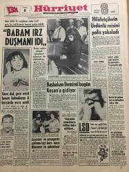 HÜRRİYET GAZETESİ 8 EYLÜL 1967 YIL :20 SAYI :6955----Babam ırz düşmanı idi --Hilafetçilerin Ürdünlü Reisini Polis Yakaladı ---Genç dul ,gece evini basan kabadayıyı 8 kurşunla yere serdi ---Başbakan Demirel Bugün Keşan a Gidiyor ---Eşyaları ve pasaportu çalınan işçi karı-koca Almanya ya gidemiyor ---Burdur da yağmur Can ve mal kaybına sebep oldu ----Ford fabrikasındaki işçiler greve başladı ---Sevim Şengül :Plaklarını iftarla Sunar ---İkinci kafilemiz 150 şişe viski ve 200 karton sigara ile gitti ---Fenerbahçe bugün kampa giriyor ---Sakat Çocuklar Okulu ---Libya Kralının Bursa da Tedavisine Başladı ---İzmir e giden Celal Bayar ın karşılanışında yaralananlar oldu --Milyoner İş Adamı İçki Masasında Öldü --- adlı eser, Kitap > Süreli Yayınlar > Gazeteler > Türkiye > Genel > Günlük kategorisinde İkinci El olarak satıştadır.