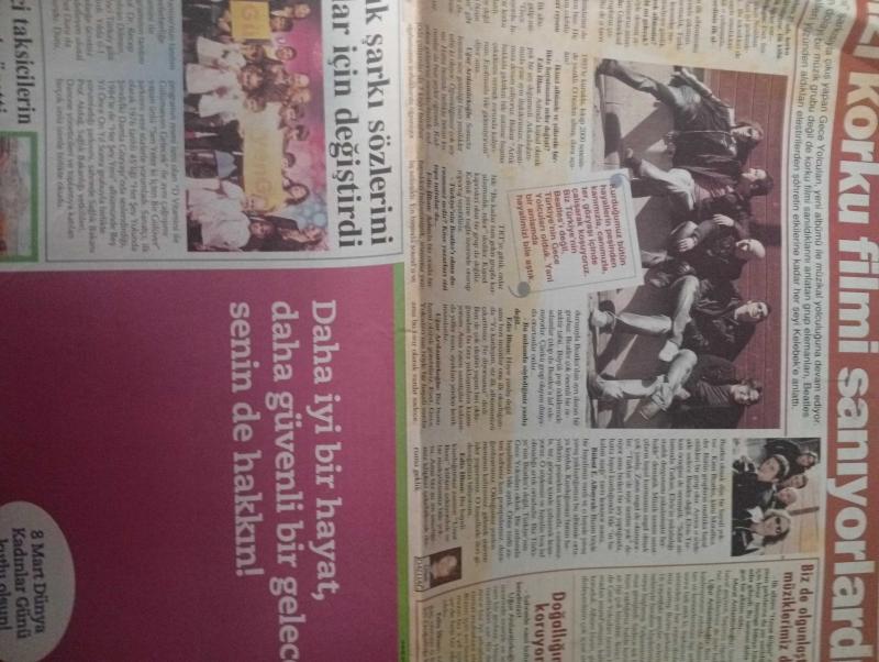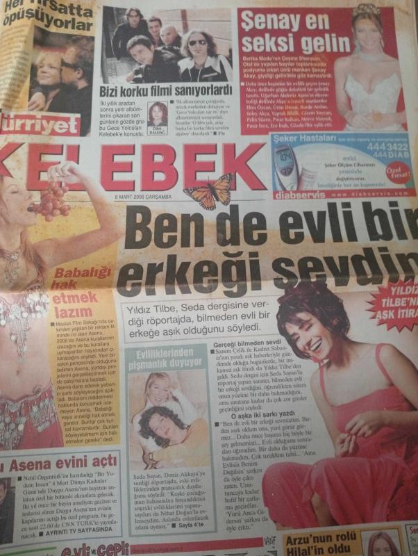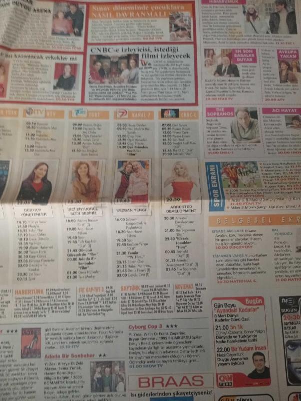 HÜRRİYET GAZETESİ - 8 MART 2006 -Yıldız Tilbe-Seda Sayan-Deniz Akkaya-Seren Serengil-Emrah-Sinem Çelik-Kadir İnanır-Funda Öncü-Gülben Ergen-Merve Kayaalp-Naz Elmas-Uğur Yücel-Çetin Altan-Nilgün Belgün-Seher Dilovan-Kenan Doğulu-Yasemin Dalkılıç-Onur Baştürk-Sibel Can-Çolpan İlhan-Ruhi Su-Bülent Ortaçgil-Lior Kretzer-Ricardo Moyano-Toros Can-Dilek Türker-Meral Okay-Serenay Şirin-Simay Barlas-Ece Vahapoğlu-Rahmi Koç-Ece Gürsel-Nazan Öncel-Tarkan-Sinem Bayer-Burcu Çetinkaya-Dilek Ertek-Nazan Şoray-Gülriz Sururi-Fred West-Lucy Hamilton-Shirley Robinson-Caroline Banham-Lucy Partington-Therese Siegenthaler-Shirley West-Nadide Sultan-Zülfü Livaneli-Kenan Evren-Oğuz Soydan-Alihan Kesici-Mehmet Ali Yalçın-Ayşe Yıldız-Tijen Karaş-Mustafa Akay Ben de evli bir erkeği sevdim-Ben eskiden küçüktüm-Zaman altında bir kadın-Kadınlar Hapiste-Bizi korku filmi sanıyorlardı-Şenay en seksi gelin-Babalığı inkar etmek lazım-Duygu Asena evini açtı-Karikatür-Selanikli Aleviyim-Karikatür-MANAVDA SIRA NE ARAMIŞ-B adlı eser Türkçe dilindedir.