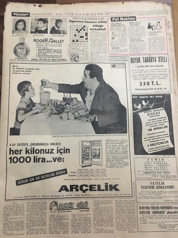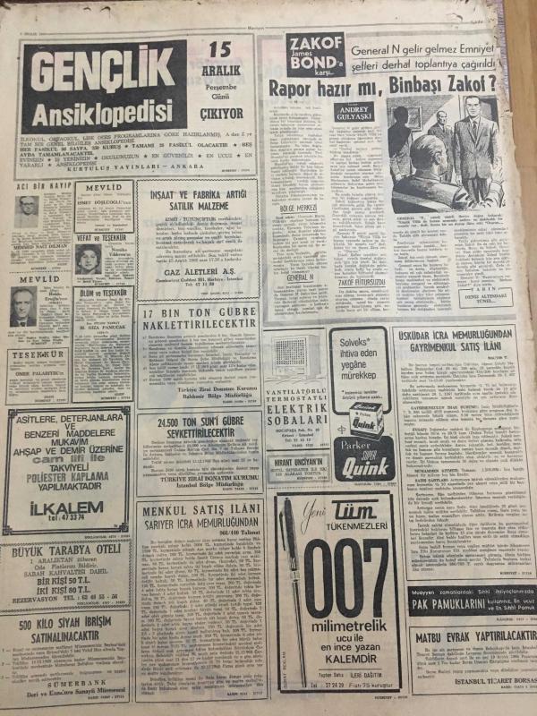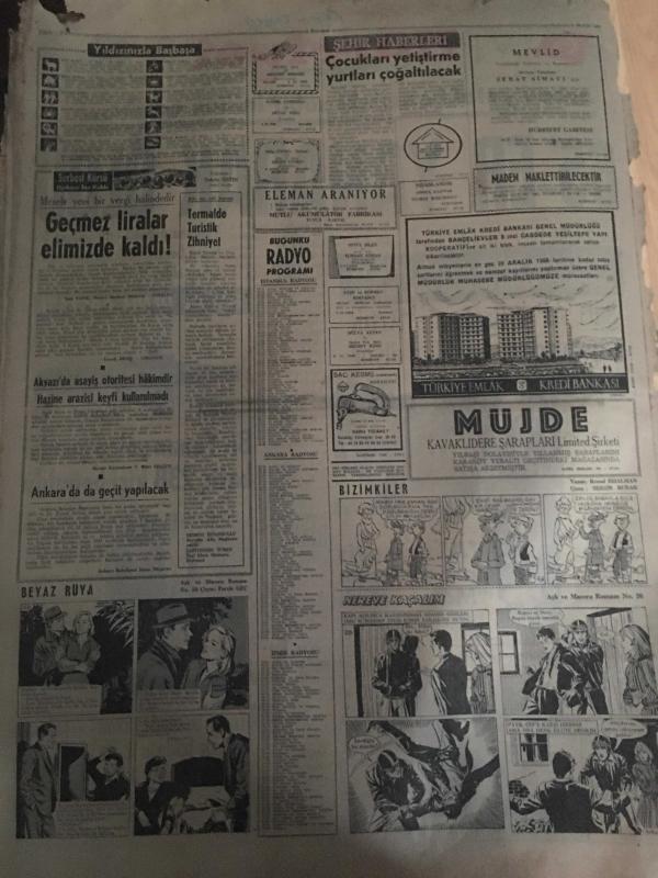 HÜRRİYET GAZETESİ 9 ARALIK 1966 YIL :19 SAYI :6687--65 Er Yanarak Öldü--Siirt AP İl başkanı :Artık canımızdan bezdik ---Vali ,asayiş sorumlularına moral verdi ---Bir Yunan Yolcu Gemisi Battı ,238 Kişi Boğuldu ---Çok eski bir lokomotif hala Adana da çalışıyor ---Emekli bir assubay ,cami önünde bulduğu 12 bin liranın sahibini arıyor ---Çocukların yetiştirme yurtları çoğalacak ---Gegiç : Hiç bir ilerleme yok hala aldığım Fenerbahçe ---Amatör Milli Takımımız Avrupa Kupasında Yarı Finale Kaldı ---Genç takım Rumenlerle berabere kaldı : 1-1---Sigaranın kansere sebep olduğu muhakkak ---7 Hayvan Terbiyecisi Avrupa ya Gidiyor ---Suriye ,Irak Petrol Şirketi ne el koydu ---İzmir de bir çok semti su bastı ---Büyük deniz faciaları ---Eşkiya işi için genel görüşme açılacak --Radyo Programları --Belçika dan yapılan bir davet üzerine ---Polis oyuncak tabancalı bir sabıkalıyı arıyor --- adlı eser, Kitap > Süreli Yayınlar > Gazeteler > Türkiye > Genel > Günlük kategorisinde İkinci El olarak satıştadır.