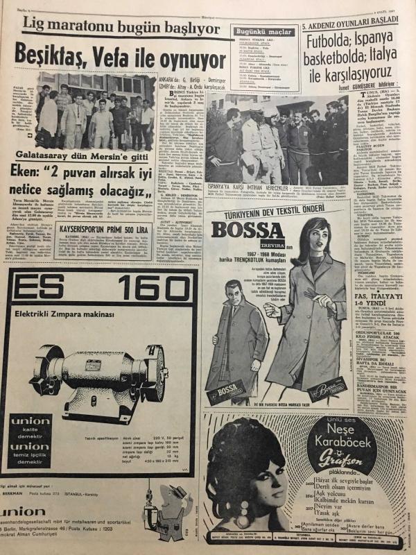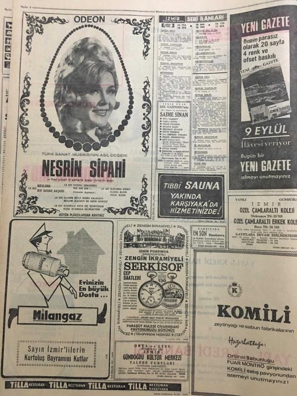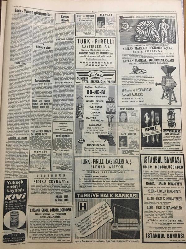 HÜRRİYET GAZETESİ 9 EYLÜL 1967 YIL :20 SAYI :6956-Magirus otobüs reklamı tam sayfa,Sirkeci Harem vapuru-Aziz Erçin-Kollias ,Bazı Yeni Tekliflerle Geliyor --Türkiye Kıbrıs ta Denize Açılan Toprak İstiyor ---İzmir in Kurtuluş Bayramı Bugün Kutlanıyor ---7 Ton Kaçak Makinalı Tüfek Mavzer ve Tabanca Ele Geçti ---Eski milyonerlerden Sait Çubukçu ,ihtiyar karısını öldürdükten sonra intihar etti ---Evliliğin devam etmesi için ihanet bir çareymiş ---Büyük ses sanatkarı : Hülya Aksoy ---Türk Sanat Musikisinin Asıl Değeri :Nesrin Sipahi ---Beşiktaş ,Vefa ile oynuyor ---Eken :2 puan alırsak iyi netice sağlamış olacağız ---Futbolda :İspanya basketbolda :İtalya ile karşılaşıyoruz ---45 .Kurtuluş Yıldönümü ---İlk Bayrak Sarıkışla 'ya çekildi ---Atina 'ya göre Kıbrıs için bir hal çaresi bulunmuş ----, SEDAT SİMAVİ tarafından kaleme alınmıştır. Kitap 1967 yılında [HÜRRİYET MATBAA] yayınlanmıştır. 8 sayfadır. HÜRRİYET GAZETESİ 9 EYLÜL 1967 YIL :20 SAYI :6956-Magirus otobüs reklamı tam sayfa,Sirkeci Harem vapuru-Aziz Erçin-Kollias ,Bazı Yeni Tekliflerle Geliyor --Türkiye Kıbrıs ta Denize Açılan Toprak İstiyor ---İzmir in Kurtuluş Bayramı Bugün Kutlanıyor ---7 Ton Kaçak Makinalı Tüfek Mavzer ve Tabanca Ele Geçti ---Eski milyonerlerden Sait Çubukçu ,ihtiyar karısını öldürdükten sonra intihar etti ---Evliliğin devam etmesi için ihanet bir çareymiş ---Büyük ses sanatkarı : Hülya Aksoy ---Türk Sanat Musikisinin Asıl Değeri :Nesrin Sipahi ---Beşiktaş ,Vefa ile oynuyor ---Eken :2 puan alırsak iyi netice sağlamış olacağız ---Futbolda :İspanya basketbolda :İtalya ile karşılaşıyoruz ---45 .Kurtuluş Yıldönümü ---İlk Bayrak Sarıkışla 'ya çekildi ---Atina 'ya göre Kıbrıs için bir hal çaresi bulunmuş ---- adlı eser Türkçe dilindedir.