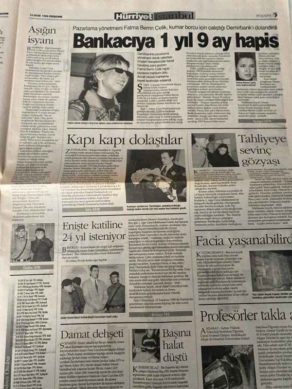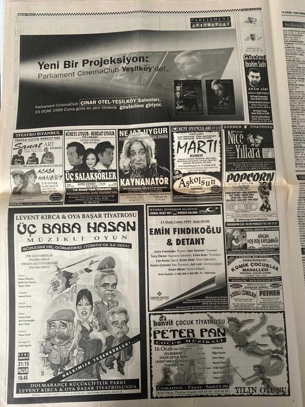 HÜRRİYET GAZETESİ DOĞUM GÜNÜ GAZETESİ- 14 OCAK 1999 -176 metrelik inşaata soğutma kulesi de konulunca 180 metreye ulaşacak-Türkiye’nin zirvesi-yavuz Har rani-İş Bankası Genel müdürlüğü kompleksi-Ayşen gür-en yüksek en güçlü-kahveciler odası başkanı Ahmet Turan Doğan-Orhan Gencebay‘dan iftar yemeği-gözleme gözde-Tuğrul Şavkay-İgdaş Genel müdürü Fuat Şengül-boğazda doğal gaz boru hattı-kanbalat uz-müftü Necati tayyar Taş ve Türkiye Ermeniler Patriği Mutafyan-Delta motorlu taşıtlar-Ayten görgün-bankacıya bir yıl dokuz ay hapis-Fatma Berrin Çelik Sucuk suçu kabul etmedi-Ayşegül usta-kapı kapı dolaştılar-Sefa Kınık-enişte katiline 24 yıl isteniyor-Zafer gümrükçü-Özden atik-Aydın Bilgin-Semih Gürmen-Beyazıt Öztürk-çağrı filmi-ölüm meleği brad pitt olursa-nejat Uygur-tiyatro bakış aşk mektupları-nedret Güvenç-fersoy-parasız yaşamak pahalı müzikli güldürü-Rasim Öztekin-Baykal kent-Müfit Can saçıntı-Ata Demirer-İbrahim Sadri-popcorn-Süheyl ve Behzat Uygur-Levent kırca ve Oya başar tiyatrosu-sek adlı eser Türkçe dilindedir. Eserin içeriğinde Türkçe dilinde bölümlere de yer verilmektedir.