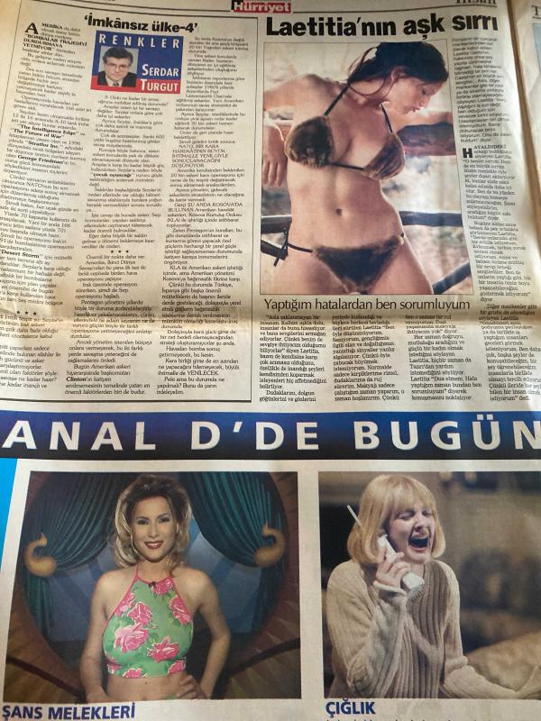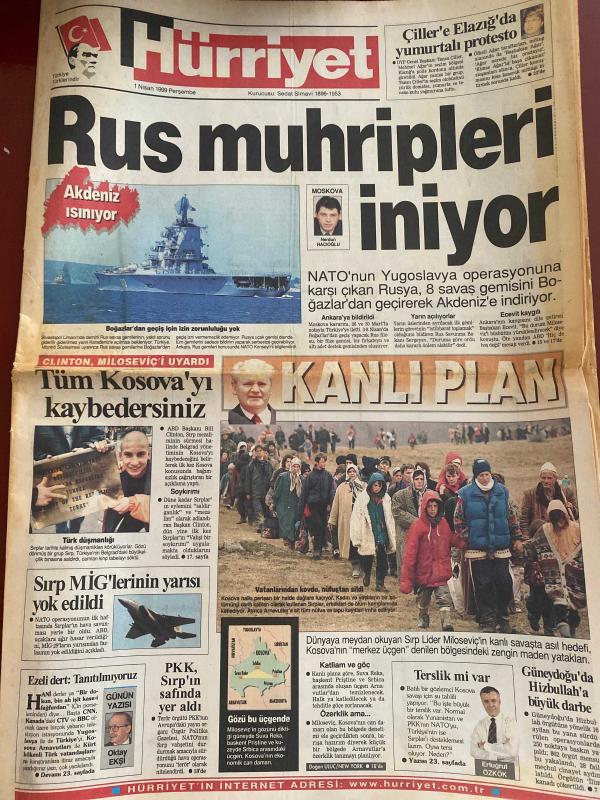 HÜRRİYET GAZETESİ DOĞUM GÜNÜ HEDİYESİ - 1 NİSAN 1999 -TAM TAKIM 30 SAYFADIR -Bill Clinton-Milosevic-Henri Hadioglu-Oktay Ekşi-Ertuğrul Özkök-Mithat Dukadinac-Celal Demirbilek-Ruşen Güven-İlhan Söyler-Alper Mert-Feldkamp-Alpay-Kerem Alışık-Hülya Avşar-Melahat Sönmez-Leyla Sönmez-Neil Armstrong-Mesude Ersan-Mustafa Kara Rus muhripleri iniyor-Akdeniz ısınıyor-Tüm Kosova’yı kaybedersiniz-Kanlı plan-Sırp MiG’lerinin yarısı yok edildi-Ezelî dert tanıtılmıyoruz-PKK Sırp’ın safında yer aldı-Terslik mi var-Hayatım kurtuldu-Florya’da bomba paniği-Kalenin çaresi bizde-Ya yeneriz ya gideriz-Gurbetçiler fark yedi-Balic Beşiktaş maçında sahada-Feldkamp çarketti-Alpay: Fener’in hiç şansı yok-Evlilik sinyalleri-Her an kavga çıkabilir-2 milyona tırmanıyor-Onları ölüm bile ayıramadı-Şarlatan diyet sağlık bozuyor-Ay fotoğrafı için yeni sahtekârlık kanıtları Karikatür: Güz Aral’ın karalama defteri-Melahat Sönmez-Leyla Sönmez-Fikret Hakan-Neil Armstrong-Mesude Ersan-Mustafa Kara-Savaş Ördu Şarlatan diye adlı eser, Kitap > Süreli Yayınlar > Gazeteler > Türkiye > Genel > Günlük kategorisinde İkinci El olarak satıştadır.