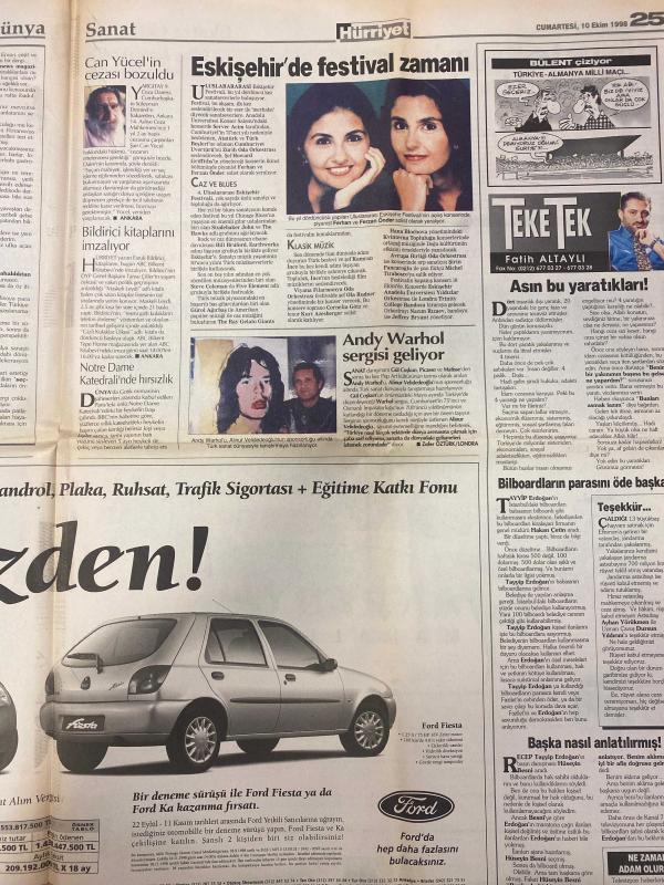 HÜRRİYET GAZETESİ DOĞUM GÜNÜ HEDİYESİ - 10 EKİM 1998 -24 SAYFADIR -Kenan Doğulu-Ayten Görgün-Özlem Çakar-Haldun Sevel-Bill Clinton-Hadi Uluengin-Can Yücel-Bülent-Bülent Ecevit-Yalçın Bayer-Enis Berberoğlu-Mukerrem Kayahan-Necati Doğru-Mehmet Mercan Bir yarışma öyküsü-Özür diledi arabayı aldı-Bu bir vicdan meselesi-Ne dediler-Kaderim Tanrı’nın elinde-Hong Kong’da İngilizce dersi-Yunanistan Patriot alıyor-ABD Kosova cephesini kuramıyor-Yunan vetosuna AB’den by-pass-Eskişehir’de festival zamanı-Andy Warhol sergisi geliyor-Can Yücel’in cezası bozuldu-Bildirici kitaplarını imzalıyor-Şam Apo’yu gönderebilir-Panikleten patlamalar-Türkiye MED TV ekranını kararttı-Bu kış elektrik kesintisi yok-Mafya siyasetçi zincirini kırın-Yılmaz: Başkanlık sistemi Türkiye’yi maceraya götürür Karikatür-çizer isimleri: Ustura Kemal-Bin Yaşasın Gazi Paşa-Haldun Sevel-Bülent çiziyor adlı eser, Kitap > Süreli Yayınlar > Gazeteler > Türkiye > Genel > Günlük kategorisinde İkinci El olarak satıştadır.