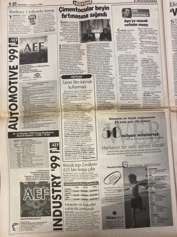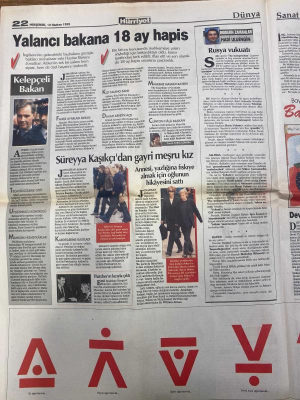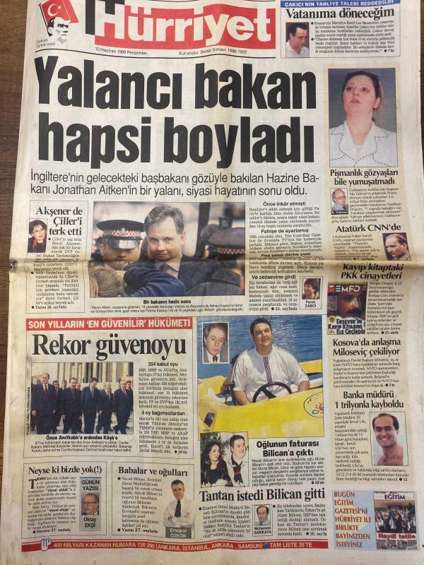 HÜRRİYET GAZETESİ DOĞUM GÜNÜ HEDİYESİ - 10 HAZİRAN 1999 -TAM TAKIM 42 SAYFADIR -Jonathan Aitken-Meral Akşener-Tansu Çiller-Kenan Evren-Faruk Zabcı-Meral Okay-Bülent Ecevit-Emrehan Halıcı-Hüsamettin Özkan-Fikret Bila-Ertuğrul Özkök-Mehmet Ağar-Enver Ören-Bülent Ecevit-Hüsamettin Özkan-Mesut Yılmaz-Cumhur Ersümer-Mesut Yılmaz-Faruk Bildirici-Osman Durmuş-Mesut Yılmaz-Fikret Bila-Mehmet Ağar-Kenan Evren-Alpay Özalan-Tayfur Havutçu-İsmail Er-Süleyman Seba-Kenan Evren-Rıdvan Dilmen-Fatih Terim-Ruşen Güven-Bayram Aydın-Arif Erdem-Okan Buruk-Sergen Yalçın-Moshoeu-Kemalettin Şentürk-Saffet Sancaklı-Murat Şahin-Tayfun Korkut-Erol Bulut-Üche Okechukwu-Aygün Yılmaz-Taner Savut-Hakan İbrahim Kubilay-Atilla Birlik-Benhur Köklükaya-Kerem İnan-Faruk Süren-Tayfun Korkut-İlker Namıkoğlu-Enis Berberoğlu-Çiğdem Toker-Tamer Bey-İlter Türkmen-Ayça Genç-Haldun Sevel Yalancı bakan hapsi boyladı-Akşener de Çiller’i terk etti-Rekor güvenoyu-Oğlunun faturası Bilican’a çıktı-Tantan istedi Bilican gitti-Kunta Ki, AYDIN DOĞAN tarafından kaleme alınmıştır. HÜRRİYET GAZETESİ DOĞUM GÜNÜ HEDİYESİ - 10 HAZİRAN 1999 -TAM TAKIM 42 SAYFADIR -Jonathan Aitken-Meral Akşener-Tansu Çiller-Kenan Evren-Faruk Zabcı-Meral Okay-Bülent Ecevit-Emrehan Halıcı-Hüsamettin Özkan-Fikret Bila-Ertuğrul Özkök-Mehmet Ağar-Enver Ören-Bülent Ecevit-Hüsamettin Özkan-Mesut Yılmaz-Cumhur Ersümer-Mesut Yılmaz-Faruk Bildirici-Osman Durmuş-Mesut Yılmaz-Fikret Bila-Mehmet Ağar-Kenan Evren-Alpay Özalan-Tayfur Havutçu-İsmail Er-Süleyman Seba-Kenan Evren-Rıdvan Dilmen-Fatih Terim-Ruşen Güven-Bayram Aydın-Arif Erdem-Okan Buruk-Sergen Yalçın-Moshoeu-Kemalettin Şentürk-Saffet Sancaklı-Murat Şahin-Tayfun Korkut-Erol Bulut-Üche Okechukwu-Aygün Yılmaz-Taner Savut-Hakan İbrahim Kubilay-Atilla Birlik-Benhur Köklükaya-Kerem İnan-Faruk Süren-Tayfun Korkut-İlker Namıkoğlu-Enis Berberoğlu-Çiğdem Toker-Tamer Bey-İlter Türkmen-Ayça Genç-Haldun Sevel Yalancı bakan hapsi boyladı-Akşener de Çiller’i terk etti-Rekor güvenoyu-Oğlunun faturası Bilican’a çıktı-Tantan istedi Bilican gitti-Kunta Ki adlı eser Türkçe dilindedir.