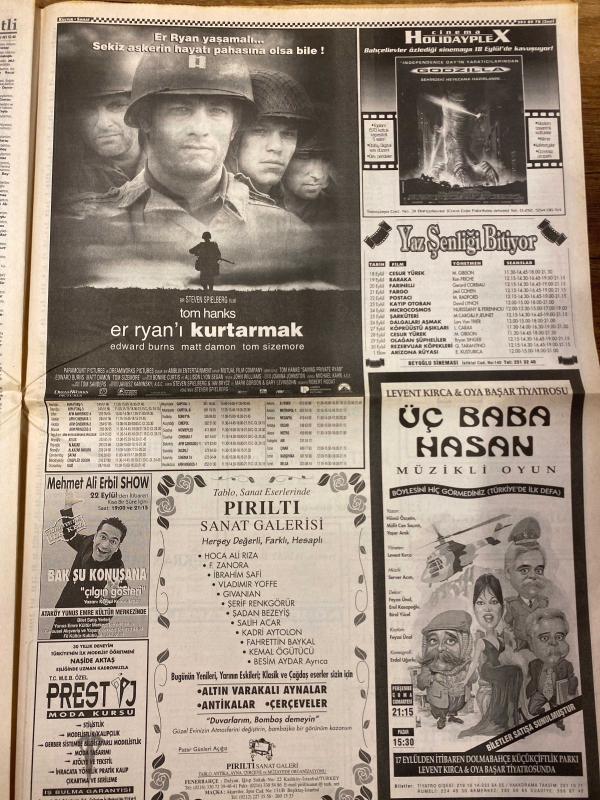 HÜRRİYET GAZETESİ DOĞUM GÜNÜ HEDİYESİ - 12 EYLÜL 1998 -TAM TAKIM 42 SAYFADIR -Monica Lewinsky-Bill Clinton-Hillary Clinton-Kenneth Starr-Oktay Ekşi-Ertuğrul Özkök Porno roman gibi rapor-Amerikalı’nın yüzü kızardı-Raporu Kongre yayınlattı-Bu suçlamalar başkanı götürür-Düşük profilli hükümet mi-Aranan Arap gazeteci Mısır Konsolosluğu’nda-Hainin peşindeyiz-Rusya asla komünist olmayacak-Asker mektubu-Neşe Aksoy-Kaya Çilingiroğlu-Hülya Avşar-Rus asıllı Matilda-Zeynep Tatlıses-Seray Sever-Defne Samyeli-Orhan Kaynar-Toshack-Ümit Davala-Fatih Terim-Bayram Aydın-Madonna-Whitney Houston-Mariah Carey-Beastie Boys-Will Smith-Wyclef Jean-Green Day-Fiona Apple-Müjdat Gezen-Metin Akpınar-Zeki Alasya-Meltem Cumbul-Beyazıt Öztürk-Meral Okay-Mert Yılmaz Yeni Lolita-Neşe Aksoy’dan ilginç protesto-Tatlıses’ten spora destek-Gizli nişan-Matilda değil Zeynep-Trabzon eriyor-Ligde cumartesi ateşi-Kartal’da para isyanı-Ümit Formamı istiyorum-Löw Rüştü’yü Parma’ya sakladı-Müzik dünyasının politik gecesi-Madonn, AYDIN DOĞAN tarafından kaleme alınmıştır. HÜRRİYET GAZETESİ DOĞUM GÜNÜ HEDİYESİ - 12 EYLÜL 1998 -TAM TAKIM 42 SAYFADIR -Monica Lewinsky-Bill Clinton-Hillary Clinton-Kenneth Starr-Oktay Ekşi-Ertuğrul Özkök Porno roman gibi rapor-Amerikalı’nın yüzü kızardı-Raporu Kongre yayınlattı-Bu suçlamalar başkanı götürür-Düşük profilli hükümet mi-Aranan Arap gazeteci Mısır Konsolosluğu’nda-Hainin peşindeyiz-Rusya asla komünist olmayacak-Asker mektubu-Neşe Aksoy-Kaya Çilingiroğlu-Hülya Avşar-Rus asıllı Matilda-Zeynep Tatlıses-Seray Sever-Defne Samyeli-Orhan Kaynar-Toshack-Ümit Davala-Fatih Terim-Bayram Aydın-Madonna-Whitney Houston-Mariah Carey-Beastie Boys-Will Smith-Wyclef Jean-Green Day-Fiona Apple-Müjdat Gezen-Metin Akpınar-Zeki Alasya-Meltem Cumbul-Beyazıt Öztürk-Meral Okay-Mert Yılmaz Yeni Lolita-Neşe Aksoy’dan ilginç protesto-Tatlıses’ten spora destek-Gizli nişan-Matilda değil Zeynep-Trabzon eriyor-Ligde cumartesi ateşi-Kartal’da para isyanı-Ümit Formamı istiyorum-Löw Rüştü’yü Parma’ya sakladı-Müzik dünyasının politik gecesi-Madonn adlı eser Türkçe dilindedir.
