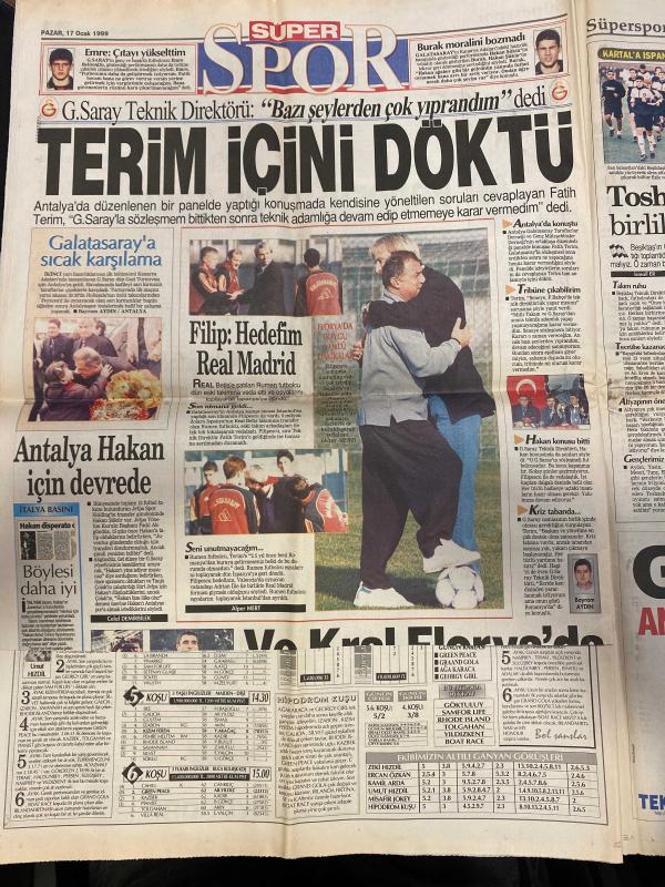 HÜRRİYET GAZETESİ DOĞUM GÜNÜ HEDİYESİ - 17 OCAK 1999 - TAM TAKIM 32 SAYFADIR -Abdullah Öcalan-Haluk Kırcı-Sedat Bucak-Uğur Dündar-Prenses Olga-Murat Bardakçı-Akşener-Oktay Ekşi-Toshack-Cem Yılmaz-Boliç-Fatih Terim-Filip-Emre-Burak-Bayram Aydın-Yalım Erez-Sedat Ergin-Zülfü Livaneli-Nurettin Sözen-Mehmet Moğultay-Ercan Karakaş-Algan Hacaloğlu-Altan Oymen-Cevdet Selvi-Ali Topuz-Hasan Fehmi Güneş-Mehmet Sevigen-Bülent Tanla-Ethem Cankurtaran İtalya da def etti-Yaptığımız hayvanlıktı-Prenses Olga’nın Türkiye’ye vedası-Tita artık yok-Uzun tatilde ilk gün 26 kurban-Kombassan’dan ABD’de zincir-Cep telefonunda süper evlilik-Bacak ağrıları için yeni ilaç-Celile ‘açlık grevinde’-Kırık notlu öğrenciler okulu talan etti-Fenerbahçe’nin Derwall’i olacağım-Toshack’tan birlik çağrısı-Fener’i Boliç güldürdü-Terim içini döktü-Filip: Hedefim Real Madrid-Antalya Hakan için devrede-1 Şubat’ta lider-CHP’de sıra yarışı-Tantan niye piyano çalmıyor?-Parasız yaşamak pahalı-Kaynanatör-Akıl adası, Aydın Doğan tarafından kaleme alınmıştır. HÜRRİYET GAZETESİ DOĞUM GÜNÜ HEDİYESİ - 17 OCAK 1999 - TAM TAKIM 32 SAYFADIR -Abdullah Öcalan-Haluk Kırcı-Sedat Bucak-Uğur Dündar-Prenses Olga-Murat Bardakçı-Akşener-Oktay Ekşi-Toshack-Cem Yılmaz-Boliç-Fatih Terim-Filip-Emre-Burak-Bayram Aydın-Yalım Erez-Sedat Ergin-Zülfü Livaneli-Nurettin Sözen-Mehmet Moğultay-Ercan Karakaş-Algan Hacaloğlu-Altan Oymen-Cevdet Selvi-Ali Topuz-Hasan Fehmi Güneş-Mehmet Sevigen-Bülent Tanla-Ethem Cankurtaran İtalya da def etti-Yaptığımız hayvanlıktı-Prenses Olga’nın Türkiye’ye vedası-Tita artık yok-Uzun tatilde ilk gün 26 kurban-Kombassan’dan ABD’de zincir-Cep telefonunda süper evlilik-Bacak ağrıları için yeni ilaç-Celile ‘açlık grevinde’-Kırık notlu öğrenciler okulu talan etti-Fenerbahçe’nin Derwall’i olacağım-Toshack’tan birlik çağrısı-Fener’i Boliç güldürdü-Terim içini döktü-Filip: Hedefim Real Madrid-Antalya Hakan için devrede-1 Şubat’ta lider-CHP’de sıra yarışı-Tantan niye piyano çalmıyor?-Parasız yaşamak pahalı-Kaynanatör-Akıl adası adlı eser Türkçe dilindedir.