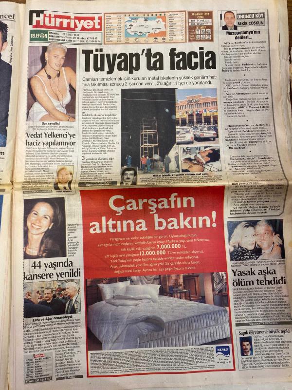 HÜRRİYET GAZETESİ DOĞUM GÜNÜ HEDİYESİ - 18 ARALIK 1997 -TAM TAKIM 46 SAYFADIR -Bill Clinton-Saddam Hüseyin-Abdullah Öcalan-D’Alema-Oktay Ekşi-Ertuğrul Özkök-Ortaç-Rüştü-Löw-Harun-Toshack-Fatih Terim-Yener Süsoy-Serdar Ortaç-Mumcu-Çölaşan-Bekir Coşkun-Vedat Yelkenci-Ağar Devirene kadar-Çabuk o adama bir yer bulun-Telefon dinleme skandalı-Saddam alçaklar karşımıza çıkın-Sürpriz Çöl Tilkisi Bill’i kurtaramadı-Ülker yine tatsız-Fener Çizme’de tutunamadı-Baraj 75 puan-Rüştü idmana çıkmadı-Fatura yıldızlara-Golcülerin zafer keyfi-Cezalar kapıda-Ertuğrul özür dileriz-Hesabını soracağız-Cezaevinde 66 gün-Tüyap’ta facia-44 yaşında kansere yenildi-Yasak aşka ölüm tehdidi Güz Aral’ın karalama defteri-18 gece uyku uyumadım-Abdullah Öcalan-Kamran İnan-Kenan Demir-Ramazan Yavuz İtalya Apo villada-Sığınma için resmen başvurdular-Ankara’dan jet itiraz-Apo’yu kimse kucağında tutamaz-Bild en tehlikeli terörist serbest-60’lık korucudan PKK’ya gözdağı-Apo İsveç Başbakanı’na teşekkür mektubu yazdı adlı eser, Kitap > Süreli Yayınlar > Gazeteler > Türkiye > Genel > Günlük kategorisinde İkinci El olarak satıştadır.