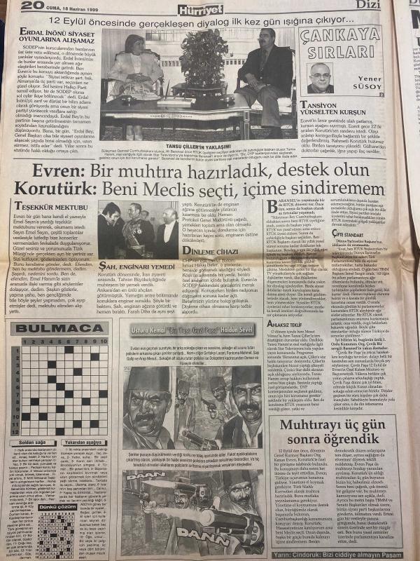HÜRRİYET GAZETESİ DOĞUM GÜNÜ HEDİYESİ - 18 HAZİRAN 1999 -TAM TAKIM 42 SAYFADIR -Demirel-Oktay Ekşi-Ecevit-Ertuğrul Özkök-Aziz Yıldırım-Rıdvan Dilmen-Celal Doğan-Halil Özan-Sergen-Fatih Terim-Arif-Okan-Tayfur-Süleyman Seba-Selahattin Gökhan-Bülent Ersöz-Ruşen Güven-Bayram Aydın-Erdal İnönü-Tansu Çiller-Yener Süsoy-Evren-Korutürk-Şah-Gülden Aydın-Serdar Turgut-Fausto Papetti Fail-i Meçhul Karalama Raporu-Sipariş Rapor Böyle Sunuldu-Çankaya Sırları-12 Eylül Öncesi Bir Diyalog-Ağlatan Kavuşma-Mehmetçik Ateş Hattında-Ecevit Kosova Düğümlendi-Vergi Yasası Değişmeli-Telekulak Kaseti Ele Geçti-Yerel Parlamento-Johnson Fener’de-Ver Sergen’i Al Dükkanı-F.Bahçe Bursasporlu Murat’ın Peşinde-F.Bahçe Alpay İçin Gün Sayıyor-Cimbom’da Mutlu Son-Çok Para Aldık-Seba Oktay Süper Golcü-Transferlerimiz Devam Edecek-Göztepe’nin Bülent Israrı-Evren Bir Muhtıra Hazırladık Destek Olun Korutürk Beni Meclis Seçti İçime Sindiremem-Şah Enginarı Yemedi-Dinleme Cihazı-Muhtırayı Üç Gün Sonra Öğrendik-Venedik Bienali adlı eser, Kitap > Süreli Yayınlar > Gazeteler > Türkiye > Genel > Günlük kategorisinde İkinci El olarak satıştadır.