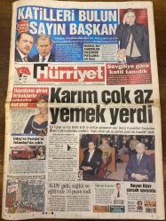 HÜRRİYET GAZETESİ DOĞUM GÜNÜ HEDİYESİ - 22 ARALIK 2004 -TAM TAKIM 52 SAYFADIR -Recep Tayyip Erdoğan-George Bush-Füsun Erdil-Deniz Erdil-İlhami Erdil-Uday Halide Erdil-Deniz Halide Erdil-Erdoğan Kongar-Osman Altıntaş-Cüneyt Ülsever-Ayça Aktan-Özlem Gürses-Ceyda Karan-Bekir Coşkun-Yaşar Anter-Neset Karadağ-Orhan Çakır-Harun Arka-Esat Rençber-Doğan Akbaş-Ertuğrul Özkök-Catherine Blair Katilleri bulun sayın başkan-Karim çok az yemek yerdi-Hayatuma giren erkeklerle orkestra kuruldu-Uday’ın Ferrari’si İstanbul’da çıktı-KDV gıda sağlık ve eğitimde 10 puan indi-Mamak kriterleri-Bayan Blair çarşafı savundu-O para bende olsa görürdünüz-Hakan Şükür 1 numaradır-Ümit Karan masallarla yaşıyor-Uğur Cimbom’a evet dedi-Fener zirvede-Kartal uçuyor-Bilseydim suyun tuvalet kağıdının listesini tutardım-Askeri saygı-Eşim fazla yemek yiyen biri değildir-Harcamaları görevliler yaptı-Kocasiyla bir olup kardeşini pazarladı-Kurtarmak isterken öldüler-Bebeğini boğan anneye ömür boyu hapis istendi-Hırsız Karikat adlı eser, Kitap > Süreli Yayınlar > Gazeteler > Türkiye > Genel > Günlük kategorisinde İkinci El olarak satıştadır.