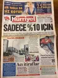 HÜRRİYET GAZETESİ DOĞUM GÜNÜ HEDİYESİ - 26 AĞUSTOS 1999 -TAM TAKIM 38 SAYFADIR -Tarkan-Veli Göçer-Oya Eroğlulu-Ayşe Arman-Holli Özkan-Turgay Şeren-Ziya Şengül-İlhan Söyler-Bekir Coşkun-Sabina Ferah-Müesser Ersoy-Kaan Girgin-Demet Akalın-Ferdi Tayfur-Ahmet Kaya-Hande Ataizi-Hüsnü Gökhan-Serdar Turgut Bir Tuğla da Siz Koyun-Sadece %10 İçin-Sıva Bile Dökülmedi-Acı İtiraflar-Yardım 42 Trilyon-Ecevit Harcamalar Şeffaf Olacak-Hayat Kurtarırken Annesini Kaybetti-Bin Kişi Daha Kurtarılırdı-Teşekkürler Fener’im-Acılar Santrada-Sağolasın Aslanım-Hakan Şükür’e 8 Dikiş-Asrın Yüzsüzü-Hırsız ve Vicdansız-Umutlar Tükendi-Deprem Ünlüleri de Ağlattı-Seda’cık Tek Başına-Orta Sınıf Devrimi-Emin Çölaşan-Dilek Duru-Hakan Tartan-Cüneyt Ülsever-Ertuğrul Özkök-Oktay Ekşi-Selim Türsay-Bulent Ecevit Hepsine Alkışlar-Tarihi Bir Gün-Teşekkür Çiçeği-Dostluğumuzu Hep Hatırlayın-Komşu’yla Barış Rüzgarı-Yardım Çöplüğü-Şimdi de Çevre Alarmı-Bebeğime Sıcak Yemek Lütfen-Kanal 6’ya Sansür Siyasi-Çadırkente Elektrik-Tam adlı eser, Kitap > Süreli Yayınlar > Gazeteler > Türkiye > Genel > Günlük kategorisinde İkinci El olarak satıştadır.