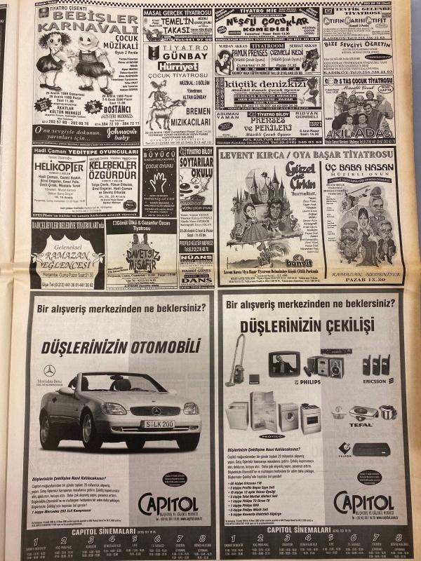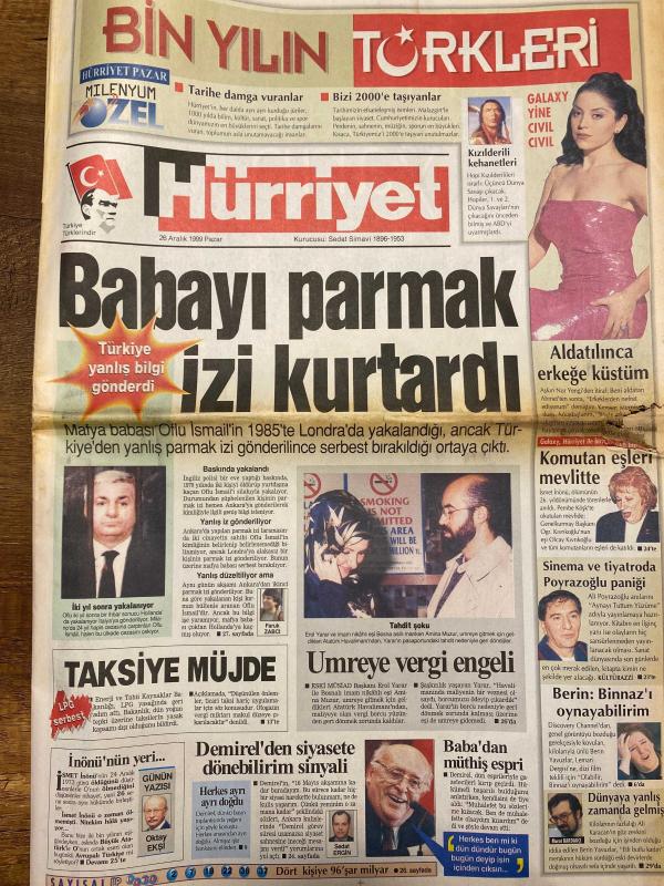 HÜRRİYET GAZETESİ DOĞUM GÜNÜ HEDİYESİ - 26 ARALIK 1999 -TAM TAKIM 44 SAYFADIR -Bin yılın Türkleri-Babayı parmak izi kurtardı-Türkiye yanlış bilgi gönderdi-Taksiye müjde-İnönü’nün yeri-Demirel’den siyasete dönebilirim sinyali-Herkes benim için ağladı-Baba’dan müthiş espri-Umreye vergi engeli-Komutan eşleri mevlitte-Sinema ve tiyatroda Poyrazoğlu fırtınası-Ali Poyrazoğlu-Berin: Binanız’ı oynayabilirim-Dünyaya yalnız zamanında gelin-Fener tılsım bozdu-Zeman inat etme-Ziya Şengül-Yazık-Başkan’a yaylım ateşi-Taraftar Fener’i yalnız bıraktı-Yeni bir başlangıç-Ahmet: Başarı tüm takımın-Sorunumu: Ben şimdi başladım-Besiktaşlı futbolcular Bursaspor galibiyetini kutluyor-Bebişler Karnavalı Çocuk Müzikali-Temel’in Takası-Bremen Mızıkacıları-Soytarılar Okulu-Grizel Çirkin-Uç Baba Hasan-Neseli Çocuklar Komedisi-Pamuk Prenses Çizmeli Kedi-Küçük Denizkızı-Prens ve Periler-Akıladası-Yalan söyleyen yıldızlar-Cia ajanıyım-Barikelik palavrası-Çok mutluyuz dediler az sonra boşandılar-Jodie’nin yalanı-Sili, AYDIN DOĞAN tarafından kaleme alınmıştır. HÜRRİYET GAZETESİ DOĞUM GÜNÜ HEDİYESİ - 26 ARALIK 1999 -TAM TAKIM 44 SAYFADIR -Bin yılın Türkleri-Babayı parmak izi kurtardı-Türkiye yanlış bilgi gönderdi-Taksiye müjde-İnönü’nün yeri-Demirel’den siyasete dönebilirim sinyali-Herkes benim için ağladı-Baba’dan müthiş espri-Umreye vergi engeli-Komutan eşleri mevlitte-Sinema ve tiyatroda Poyrazoğlu fırtınası-Ali Poyrazoğlu-Berin: Binanız’ı oynayabilirim-Dünyaya yalnız zamanında gelin-Fener tılsım bozdu-Zeman inat etme-Ziya Şengül-Yazık-Başkan’a yaylım ateşi-Taraftar Fener’i yalnız bıraktı-Yeni bir başlangıç-Ahmet: Başarı tüm takımın-Sorunumu: Ben şimdi başladım-Besiktaşlı futbolcular Bursaspor galibiyetini kutluyor-Bebişler Karnavalı Çocuk Müzikali-Temel’in Takası-Bremen Mızıkacıları-Soytarılar Okulu-Grizel Çirkin-Uç Baba Hasan-Neseli Çocuklar Komedisi-Pamuk Prenses Çizmeli Kedi-Küçük Denizkızı-Prens ve Periler-Akıladası-Yalan söyleyen yıldızlar-Cia ajanıyım-Barikelik palavrası-Çok mutluyuz dediler az sonra boşandılar-Jodie’nin yalanı-Sili adlı eser Türkçe dilindedir.
