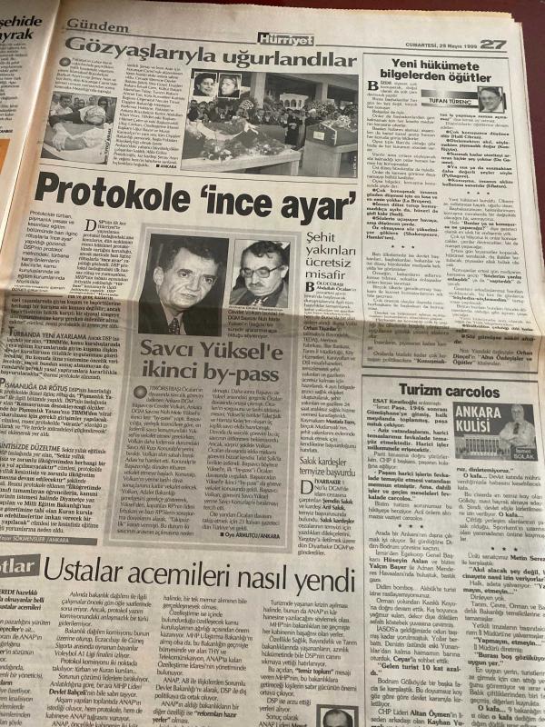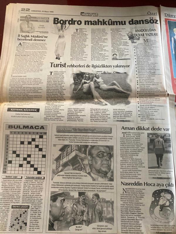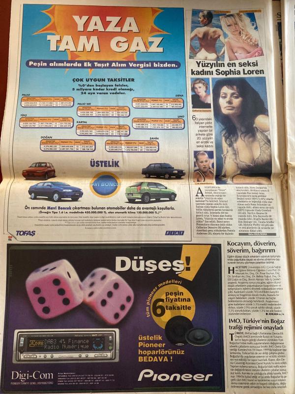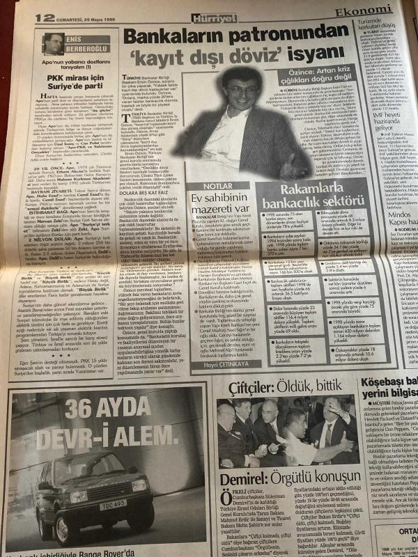HÜRRİYET GAZETESİ DOĞUM GÜNÜ HEDİYESİ - 29 MAYIS 1999 -TAM TAKIM 48 SAYFADIR -Devlet Bahçeli-Bülent Ecevit-Hüsamettin Özkan-Sadık Sami Onar-Hikmet Sami Türk-Namık Kemal Zeybek-Metin Bostancıoğlu-Sümer Oral-Kenan Tanrıkulu-Feyzi Aytekin-Ertuğrul Yalçınbayır-Oktay Ekşi-Orhan Yılmazkaya-Katli İzzet Yılmaz-Vedat Okyar-Hakan Şükür-Bülent Uygun-Savaş-Nihat-Mehmet-İlhan Söyler-Fatih Akyel-Rüştü-Volkan-Tuncay Özilhan-Naumoski-Murat-Savçi-Sophia Loren 9 Prof’lu kabine-Yılmaz tercihi Baba’ya bıraktı-Kamuda türbana izin yok-Bir Türk Almanya’da yanlış profesör öldürdü-Devlet Bahçeli arsa zengini-Eurovision’da Türk gecesi-Beşiktaş ter attı-Fener-Erzurum-G.Saray benim evim-Cimbom kördüğüm-Fener Rıdvan’la-Efes’te operasyon-Rize finalist-Yüzyılın en seksi kadını Sophia Loren-Kocamı döverim söverim bağırırım-Enis Berberoğlu-Hayri Çetin Kaya-Demirel-Haldun Sevel-Erdal Güven-Ahmet Şimşek-Mustafa Yavanoglu-Nasreddin Hoca Bankaların patronundan kayıt dışı döviz isyanı-Rakamlarla bankacılık sektörü-Ev sah, AYDIN DOĞAN tarafından kaleme alınmıştır. HÜRRİYET GAZETESİ DOĞUM GÜNÜ HEDİYESİ - 29 MAYIS 1999 -TAM TAKIM 48 SAYFADIR -Devlet Bahçeli-Bülent Ecevit-Hüsamettin Özkan-Sadık Sami Onar-Hikmet Sami Türk-Namık Kemal Zeybek-Metin Bostancıoğlu-Sümer Oral-Kenan Tanrıkulu-Feyzi Aytekin-Ertuğrul Yalçınbayır-Oktay Ekşi-Orhan Yılmazkaya-Katli İzzet Yılmaz-Vedat Okyar-Hakan Şükür-Bülent Uygun-Savaş-Nihat-Mehmet-İlhan Söyler-Fatih Akyel-Rüştü-Volkan-Tuncay Özilhan-Naumoski-Murat-Savçi-Sophia Loren 9 Prof’lu kabine-Yılmaz tercihi Baba’ya bıraktı-Kamuda türbana izin yok-Bir Türk Almanya’da yanlış profesör öldürdü-Devlet Bahçeli arsa zengini-Eurovision’da Türk gecesi-Beşiktaş ter attı-Fener-Erzurum-G.Saray benim evim-Cimbom kördüğüm-Fener Rıdvan’la-Efes’te operasyon-Rize finalist-Yüzyılın en seksi kadını Sophia Loren-Kocamı döverim söverim bağırırım-Enis Berberoğlu-Hayri Çetin Kaya-Demirel-Haldun Sevel-Erdal Güven-Ahmet Şimşek-Mustafa Yavanoglu-Nasreddin Hoca Bankaların patronundan kayıt dışı döviz isyanı-Rakamlarla bankacılık sektörü-Ev sah adlı eser Türkçe dilindedir.