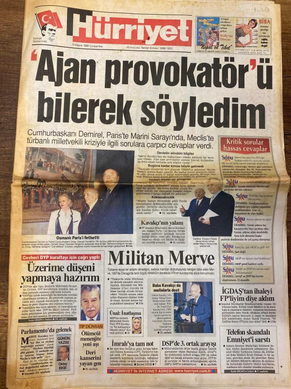 HÜRRİYET GAZETESİ DOĞUM GÜNÜ HEDİYESİ - 5 MAYIS 1999 - TAM TAKIM 42 SAYFADIR -Süleyman Demirel-Merve Kavakçı-Sedat Simavi-Oktay Ekşi-Recep Tayyip Erdoğan-Hüsamettin Cindoruk-Esengül Civelek-Tansu Çiller-İsmail Cem-Mesut Yılmaz-Hüsamettin Özkan-Bülent Ecevit-Özer Çiller-Sadi Somuncuoğlu-Hakkı Keskin-Kavakçı-Baba Kavakçı-Soner Yalçın-Hakan Şükür-Fatih Terim-Oğuz Sarvan-Saffet Sancaklı-Mehmet Özdilek-Elvir Balic-Joachim Löw-Thomas Högh-John Moshoeu-Uche Okechukwu-Abdullah Piyale-Klaus Toppmöller-Muhsin Ertuğral-Adnan Sungur-Kemal Anık-Tugay Kerimoğlu-Zoran Susiç-Ünsal Turan-Yasemin Kumral-Güz Aral-Tarkan-Michael Jackson-Harika Avcı-Hakan Peker ‘Ajan provokatör’ü bilerek söyledim-Kritik sorular hassas cevaplar-Kavakçı’nın yalanı-Militan Merve-Baba Kavakçı da mollalara dost-Üzerime düşeni yapmaya hazırım-Parlamento’da gelenek-Ölümcül menenjit yeni yaş gruplarını da kanserini yayan bir hastalık-İGDAŞ’tan ihaleyi FP’liyim diye aldım-Telefon skandalı Emniyet’i sarstı-Kupada son tango-Ezeli re, AYDIN DOĞAN tarafından kaleme alınmıştır. HÜRRİYET GAZETESİ DOĞUM GÜNÜ HEDİYESİ - 5 MAYIS 1999 - TAM TAKIM 42 SAYFADIR -Süleyman Demirel-Merve Kavakçı-Sedat Simavi-Oktay Ekşi-Recep Tayyip Erdoğan-Hüsamettin Cindoruk-Esengül Civelek-Tansu Çiller-İsmail Cem-Mesut Yılmaz-Hüsamettin Özkan-Bülent Ecevit-Özer Çiller-Sadi Somuncuoğlu-Hakkı Keskin-Kavakçı-Baba Kavakçı-Soner Yalçın-Hakan Şükür-Fatih Terim-Oğuz Sarvan-Saffet Sancaklı-Mehmet Özdilek-Elvir Balic-Joachim Löw-Thomas Högh-John Moshoeu-Uche Okechukwu-Abdullah Piyale-Klaus Toppmöller-Muhsin Ertuğral-Adnan Sungur-Kemal Anık-Tugay Kerimoğlu-Zoran Susiç-Ünsal Turan-Yasemin Kumral-Güz Aral-Tarkan-Michael Jackson-Harika Avcı-Hakan Peker ‘Ajan provokatör’ü bilerek söyledim-Kritik sorular hassas cevaplar-Kavakçı’nın yalanı-Militan Merve-Baba Kavakçı da mollalara dost-Üzerime düşeni yapmaya hazırım-Parlamento’da gelenek-Ölümcül menenjit yeni yaş gruplarını da kanserini yayan bir hastalık-İGDAŞ’tan ihaleyi FP’liyim diye aldım-Telefon skandalı Emniyet’i sarstı-Kupada son tango-Ezeli re adlı eser Türkçe dilindedir.