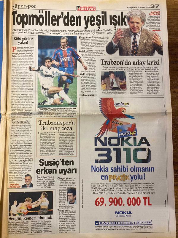 HÜRRİYET GAZETESİ DOĞUM GÜNÜ HEDİYESİ - 5 MAYIS 1999 - TAM TAKIM 42 SAYFADIR -Süleyman Demirel-Merve Kavakçı-Sedat Simavi-Oktay Ekşi-Recep Tayyip Erdoğan-Hüsamettin Cindoruk-Esengül Civelek-Tansu Çiller-İsmail Cem-Mesut Yılmaz-Hüsamettin Özkan-Bülent Ecevit-Özer Çiller-Sadi Somuncuoğlu-Hakkı Keskin-Kavakçı-Baba Kavakçı-Soner Yalçın-Hakan Şükür-Fatih Terim-Oğuz Sarvan-Saffet Sancaklı-Mehmet Özdilek-Elvir Balic-Joachim Löw-Thomas Högh-John Moshoeu-Uche Okechukwu-Abdullah Piyale-Klaus Toppmöller-Muhsin Ertuğral-Adnan Sungur-Kemal Anık-Tugay Kerimoğlu-Zoran Susiç-Ünsal Turan-Yasemin Kumral-Güz Aral-Tarkan-Michael Jackson-Harika Avcı-Hakan Peker ‘Ajan provokatör’ü bilerek söyledim-Kritik sorular hassas cevaplar-Kavakçı’nın yalanı-Militan Merve-Baba Kavakçı da mollalara dost-Üzerime düşeni yapmaya hazırım-Parlamento’da gelenek-Ölümcül menenjit yeni yaş gruplarını da kanserini yayan bir hastalık-İGDAŞ’tan ihaleyi FP’liyim diye aldım-Telefon skandalı Emniyet’i sarstı-Kupada son tango-Ezeli re adlı eser, Kitap > Süreli Yayınlar > Gazeteler > Türkiye > Genel > Günlük kategorisinde İkinci El olarak satıştadır.