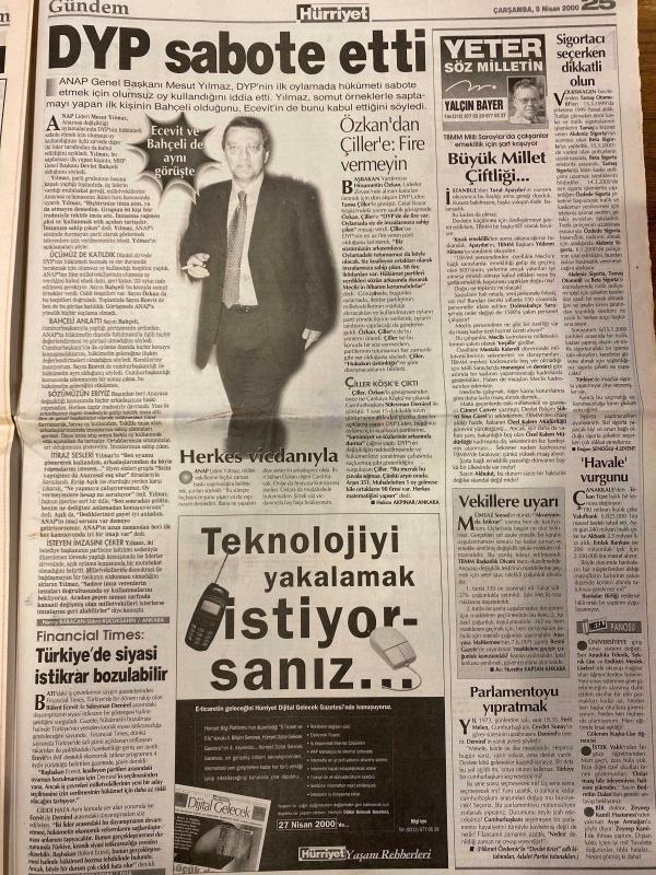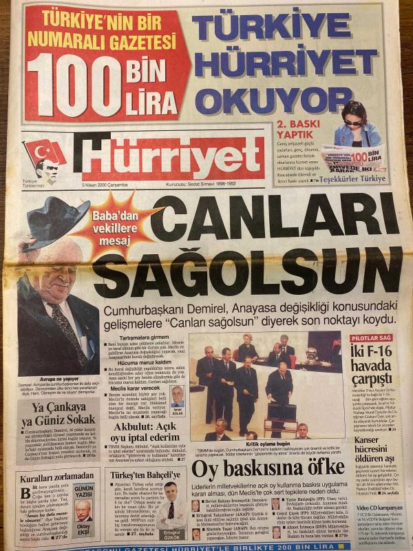 HÜRRİYET GAZETESİ DOĞUM GÜNÜ HEDİYESİ - 5 NİSAN 2000 -TAM TAKIM 42 SAYFADIR -Süleyman Demirel-Kenan Solak-Bülent Ecevit-Devlet Bahçeli-Mesut Yılmaz-Hüsamettin Özkan-Tansu Çiller-Yalçın Bayer-Oktay Ekşi-Ertuğrul Özkök-Turgay Şeren-Daüm-Aziz Yıldırım-Fatih Terim-Emre-Ömer Onan-Ümit Zileli-Yüksel Sengül-Sadri Alışık-Çolpan İlhan-Kerem Alışık-Selçuk Yöntem-Haldun Dormen-Gönül Ülkü Sezer-Hakan Alkan-Hüseyin Kocabıyık Canları sağolsun-Ya Çankaya ya Güniz Sokak-Kuralları zorlamadan-Akbulut: Açık oyu iptal ederim-Türkeş’ten Bahçeli’ye-Oy baskısına öfke-İki F-16 havada çarpıştı-Kanser hücresini öldüren aşı-11 haftanın kartalı-Briğel’den özel görev-Daum çıkmazı-Anneciğim ne müthiş Türkler-Transferimi dondurdum-Sık sık mezarına gidip Sadri’yle konuşuyorum-DYP sabote etti-Özkan’dan Çiller’e: Fire vermeyin-Yeter söz milletin-Büyük Millet Çiftliği-Sigortacı seçerken dikkatli olun-Havale vurgunu adlı eser, Kitap > Süreli Yayınlar > Gazeteler > Türkiye > Genel > Günlük kategorisinde İkinci El olarak satıştadır.