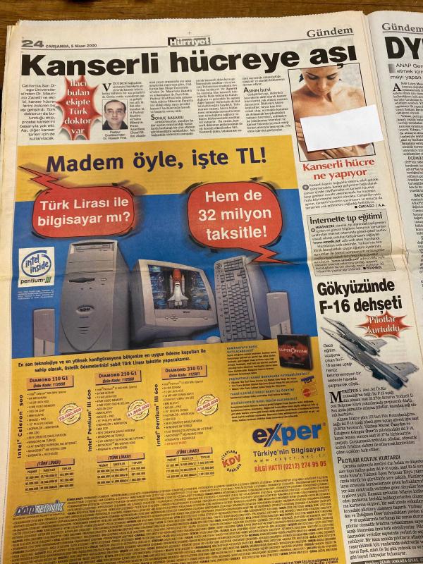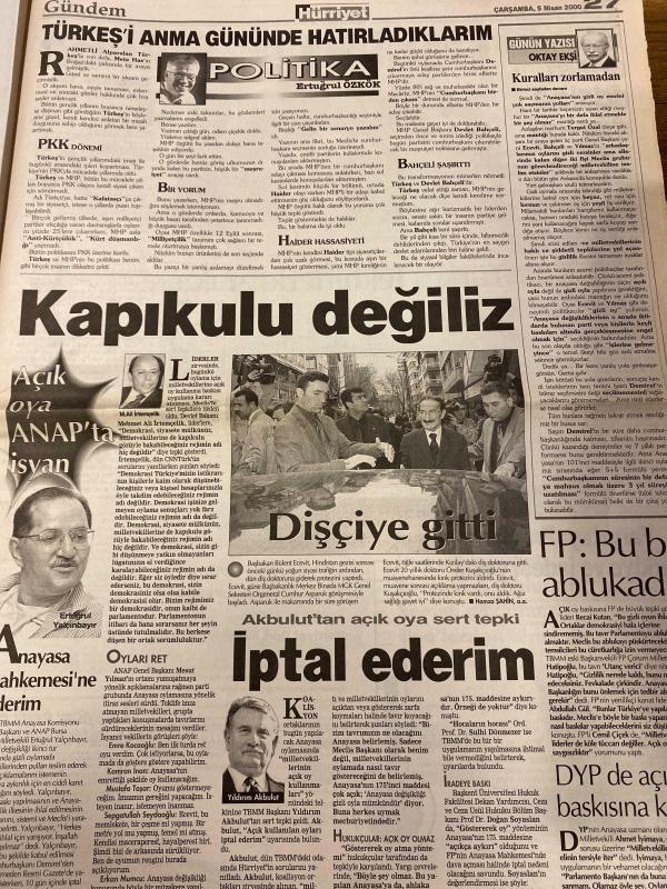 HÜRRİYET GAZETESİ DOĞUM GÜNÜ HEDİYESİ - 5 NİSAN 2000 -TAM TAKIM 42 SAYFADIR -Süleyman Demirel-Kenan Solak-Bülent Ecevit-Devlet Bahçeli-Mesut Yılmaz-Hüsamettin Özkan-Tansu Çiller-Yalçın Bayer-Oktay Ekşi-Ertuğrul Özkök-Turgay Şeren-Daüm-Aziz Yıldırım-Fatih Terim-Emre-Ömer Onan-Ümit Zileli-Yüksel Sengül-Sadri Alışık-Çolpan İlhan-Kerem Alışık-Selçuk Yöntem-Haldun Dormen-Gönül Ülkü Sezer-Hakan Alkan-Hüseyin Kocabıyık Canları sağolsun-Ya Çankaya ya Güniz Sokak-Kuralları zorlamadan-Akbulut: Açık oyu iptal ederim-Türkeş’ten Bahçeli’ye-Oy baskısına öfke-İki F-16 havada çarpıştı-Kanser hücresini öldüren aşı-11 haftanın kartalı-Briğel’den özel görev-Daum çıkmazı-Anneciğim ne müthiş Türkler-Transferimi dondurdum-Sık sık mezarına gidip Sadri’yle konuşuyorum-DYP sabote etti-Özkan’dan Çiller’e: Fire vermeyin-Yeter söz milletin-Büyük Millet Çiftliği-Sigortacı seçerken dikkatli olun-Havale vurgunu, AYDIN DOĞAN tarafından kaleme alınmıştır. HÜRRİYET GAZETESİ DOĞUM GÜNÜ HEDİYESİ - 5 NİSAN 2000 -TAM TAKIM 42 SAYFADIR -Süleyman Demirel-Kenan Solak-Bülent Ecevit-Devlet Bahçeli-Mesut Yılmaz-Hüsamettin Özkan-Tansu Çiller-Yalçın Bayer-Oktay Ekşi-Ertuğrul Özkök-Turgay Şeren-Daüm-Aziz Yıldırım-Fatih Terim-Emre-Ömer Onan-Ümit Zileli-Yüksel Sengül-Sadri Alışık-Çolpan İlhan-Kerem Alışık-Selçuk Yöntem-Haldun Dormen-Gönül Ülkü Sezer-Hakan Alkan-Hüseyin Kocabıyık Canları sağolsun-Ya Çankaya ya Güniz Sokak-Kuralları zorlamadan-Akbulut: Açık oyu iptal ederim-Türkeş’ten Bahçeli’ye-Oy baskısına öfke-İki F-16 havada çarpıştı-Kanser hücresini öldüren aşı-11 haftanın kartalı-Briğel’den özel görev-Daum çıkmazı-Anneciğim ne müthiş Türkler-Transferimi dondurdum-Sık sık mezarına gidip Sadri’yle konuşuyorum-DYP sabote etti-Özkan’dan Çiller’e: Fire vermeyin-Yeter söz milletin-Büyük Millet Çiftliği-Sigortacı seçerken dikkatli olun-Havale vurgunu adlı eser Türkçe dilindedir.