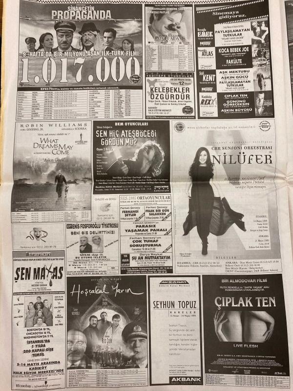 HÜRRİYET GAZETESİ DOĞUM GÜNÜ HEDİYESİ - 8 MAYIS 1999 -TAM TAKIM 44 SAYFADIR -Merve Kavakçı-Leyla Zana-Recai Kutan-Oktay Ekşi-Ertuğrul Özkök-Cavit Yurdaçan-Turan Yılmaz-Ara Güler-Aydın Doğan-Bülent Ecevit-Toshack-Hagi-Okan-Hakan Ünsal-Suat Kaya-Selim Serdar-Sadi Kemal Yaşar-Fatih Terim-Bayram Aydın-Vedat Okyar-Turgay Şeren-Cüneyt Tanman-Robbie Williams-Cuba Gooding Jr.-Annabella Sciorra-Robin Williams-Nilüfer-Seyhun Topuz-Reis Çelik-Heather Kozar-Hugh Hefner-Sakıp Sabancı-Mehmet Barlas Merve FP’nin Zana’sı-Türban vampiri-ABD’ye mi dönüyor-Cimbom taraftarı Fener’i geçti-Ecevit ilk turda kimseye önermeyecek-Hagi’ye adım attırmayın-F.Bahçe’de Toni sesleri-Löw 6 oyuncu istedi-G.Saray Fener’i geçti-En okumuş taraftar Fener’de-G.Saray’da kongre günü-NBA’de play-off heyecanı Kanal D’de-Propaganda-What Dreams May Come-Sen Hiç Ateşböceği Gördün mü?-Nilüfer konseri-Çıplak Ten-Hoşçakal Yarın-Viagra sayesinde 4 kadınla beraber-Kaçırılan eserler bir bir dönüyor, AYDIN DOĞAN tarafından kaleme alınmıştır. HÜRRİYET GAZETESİ DOĞUM GÜNÜ HEDİYESİ - 8 MAYIS 1999 -TAM TAKIM 44 SAYFADIR -Merve Kavakçı-Leyla Zana-Recai Kutan-Oktay Ekşi-Ertuğrul Özkök-Cavit Yurdaçan-Turan Yılmaz-Ara Güler-Aydın Doğan-Bülent Ecevit-Toshack-Hagi-Okan-Hakan Ünsal-Suat Kaya-Selim Serdar-Sadi Kemal Yaşar-Fatih Terim-Bayram Aydın-Vedat Okyar-Turgay Şeren-Cüneyt Tanman-Robbie Williams-Cuba Gooding Jr.-Annabella Sciorra-Robin Williams-Nilüfer-Seyhun Topuz-Reis Çelik-Heather Kozar-Hugh Hefner-Sakıp Sabancı-Mehmet Barlas Merve FP’nin Zana’sı-Türban vampiri-ABD’ye mi dönüyor-Cimbom taraftarı Fener’i geçti-Ecevit ilk turda kimseye önermeyecek-Hagi’ye adım attırmayın-F.Bahçe’de Toni sesleri-Löw 6 oyuncu istedi-G.Saray Fener’i geçti-En okumuş taraftar Fener’de-G.Saray’da kongre günü-NBA’de play-off heyecanı Kanal D’de-Propaganda-What Dreams May Come-Sen Hiç Ateşböceği Gördün mü?-Nilüfer konseri-Çıplak Ten-Hoşçakal Yarın-Viagra sayesinde 4 kadınla beraber-Kaçırılan eserler bir bir dönüyor adlı eser Türkçe dilindedir.