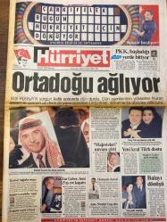 HÜRRİYET GAZETESİ DOĞUM GÜNÜ HEDİYESİ - 8 ŞUBAT 1999 -TAM TAKIM 38 SAYFADIR -Kral Hüseyin-Kaddafi-Baykal-Kutan-Zsa Zsa Gabor-Ertuğrul Özkök-Ahmet Kaya-Fatih Terim-Hagi-Turgay Şeren-İlhan Soyler-Bayram Aydın-Halit Özkan-Sergen-Hakem Zaman-Toshack-Tayyar Safi-Oral Atlı-Ecevit-Sayın Gazeteci Nurettin Kurt-Nazlı Altınyar-Uğur Yazar-Nuran Çakmakcı Ortadoğu ağlıyor-PKK başladığı yerde bitiyor-Majesteleri unvanı gitti-Yeni kral Türk dostu-Türkiye Ürdün gizli ortaklığı-Balayından dönüş-Zsa Zsa Gabor beni 3-5 ay eve kapattı-Osmanlı daveti-Apo Simitis’i bayılttı-Hagi’nin doğum günü partisi-Aslan coştu bir kere-Terim Tugay’ı kızağa oturttu-Formam namusumdur-Boğa 90’da vurdu-Sakarya bombaladı-Adana Dadaş’ı Cenk’le devirdi-Jaguar partisi lideri oldu-Halis Ağa ve genç eşi balayından döndü-Fırtına Kayseri’de minare yıktı-Denizli’de çığ 1 kişi kayıp-Bulgarlar geç vize Edirne’yi vuruyor-İstanbul öğrenci cumhuriyeti-3 haftalık tatil de bitti-Tarikat okuluna Uluğbay darbesi adlı eser, Kitap > Süreli Yayınlar > Gazeteler > Türkiye > Genel > Günlük kategorisinde İkinci El olarak satıştadır.