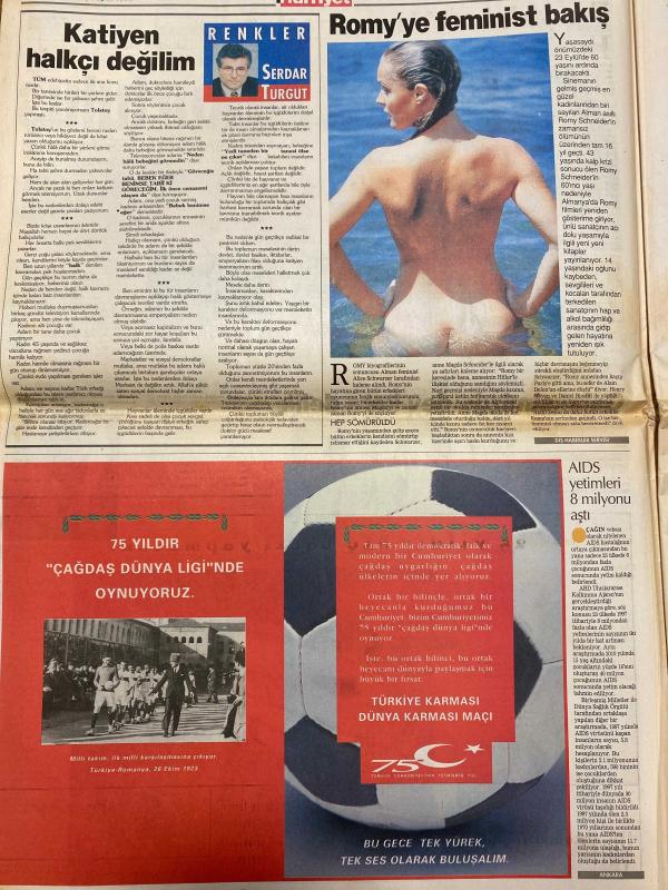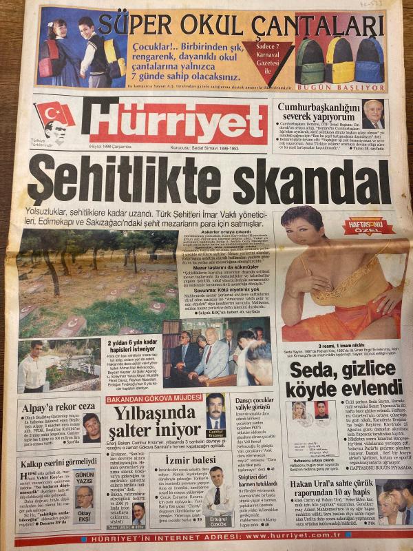 HÜRRİYET GAZETESİ DOĞUM GÜNÜ HEDİYESİ - 9 EYLÜL 1998 -TAM TAKIM 46 SAYFADIR -Süleyman Demirel-Seda Sayan-Alpay Özalan-Oktay Ekşi-Cumhur Ersümer-Ertuğrul Özkök-Gamal Ghandour-İzel-Ümit Aslan-Coşkun Sabah-Hakan Şükür-Pele-Carlos Alberto-Parreira-Zico-Servet Çetin-Hakan Balta-Ayhan Akman-Semih Kaya-Adnan Sezgin-Hasan Şaş-Emre Aşık-Roberto Carlos-Aziz Yıldırım-Sadan Kalkavan-Halim Mete-Levent Erdoğan-Göksu Alhas-Müjde Ar-Abdurrahman Dilipak-Milica Dabovic-Al Bano-Bekir Gerçek-Mike James-Orhan Pamuk-Üç Maymun (Nuri Bilge Ceylan)-Atilla Dorsay-Yaprak Dökümü-Kenan Nevzatoyan-Yalçın Bayer-Sanlı Sarıalioğlu-Adnan Sungur-Fadime Şahin-Demet Şener-Hülya Avşar-Burak Kut-Romy Schneider-Serdar Turgut Şehitlikte skandal-Cumhurbaşkanlığını severek yapıyorum-Seda gizlice köyde evlendi-Alpay’a rekor ceza-Yılbaşında şalter iniyor-İzmir balesi-Yıldızlar geçidi-İnönü’de şölen-G.Saray çok güçlü-Alpay’a 5 maç ceza-Almanya’nın işi zor-Galatasaray’da idman reformu-Dansçı kızlara moral-Vali destek verdi-Fadime, AYDIN DOĞAN tarafından kaleme alınmıştır. HÜRRİYET GAZETESİ DOĞUM GÜNÜ HEDİYESİ - 9 EYLÜL 1998 -TAM TAKIM 46 SAYFADIR -Süleyman Demirel-Seda Sayan-Alpay Özalan-Oktay Ekşi-Cumhur Ersümer-Ertuğrul Özkök-Gamal Ghandour-İzel-Ümit Aslan-Coşkun Sabah-Hakan Şükür-Pele-Carlos Alberto-Parreira-Zico-Servet Çetin-Hakan Balta-Ayhan Akman-Semih Kaya-Adnan Sezgin-Hasan Şaş-Emre Aşık-Roberto Carlos-Aziz Yıldırım-Sadan Kalkavan-Halim Mete-Levent Erdoğan-Göksu Alhas-Müjde Ar-Abdurrahman Dilipak-Milica Dabovic-Al Bano-Bekir Gerçek-Mike James-Orhan Pamuk-Üç Maymun (Nuri Bilge Ceylan)-Atilla Dorsay-Yaprak Dökümü-Kenan Nevzatoyan-Yalçın Bayer-Sanlı Sarıalioğlu-Adnan Sungur-Fadime Şahin-Demet Şener-Hülya Avşar-Burak Kut-Romy Schneider-Serdar Turgut Şehitlikte skandal-Cumhurbaşkanlığını severek yapıyorum-Seda gizlice köyde evlendi-Alpay’a rekor ceza-Yılbaşında şalter iniyor-İzmir balesi-Yıldızlar geçidi-İnönü’de şölen-G.Saray çok güçlü-Alpay’a 5 maç ceza-Almanya’nın işi zor-Galatasaray’da idman reformu-Dansçı kızlara moral-Vali destek verdi-Fadime adlı eser Türkçe dilindedir.