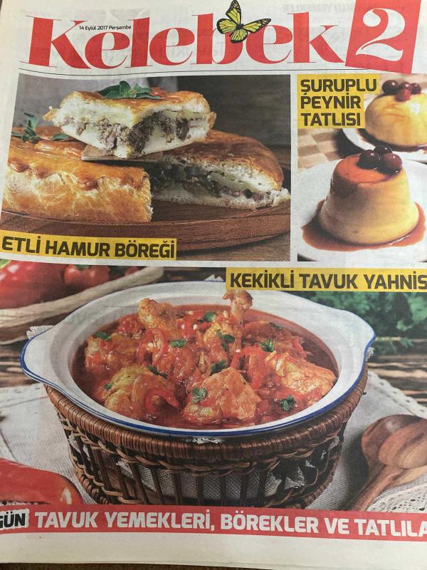 HÜRRİYET GAZETESİ HÜRRİYET KELEBEK 2 GAZETESİ DOĞUM GÜNÜ GAZETESİ - 14 Eylül 2017 - tavuk yemekleri börekler ve tatlılar-etli hamur böreği tarifi-şurup lu peynir tatlısı tarifi-kekikli tavuk yahnisi tarifi-tavuklu patates güveci tarifi-mercimekli boşnak böreği tarifi-bademli ve kirazlı savoyer tarifi- adlı eser, Kitap > Süreli Yayınlar > Gazeteler > Türkiye > Genel > Günlük kategorisinde İkinci El olarak satıştadır.