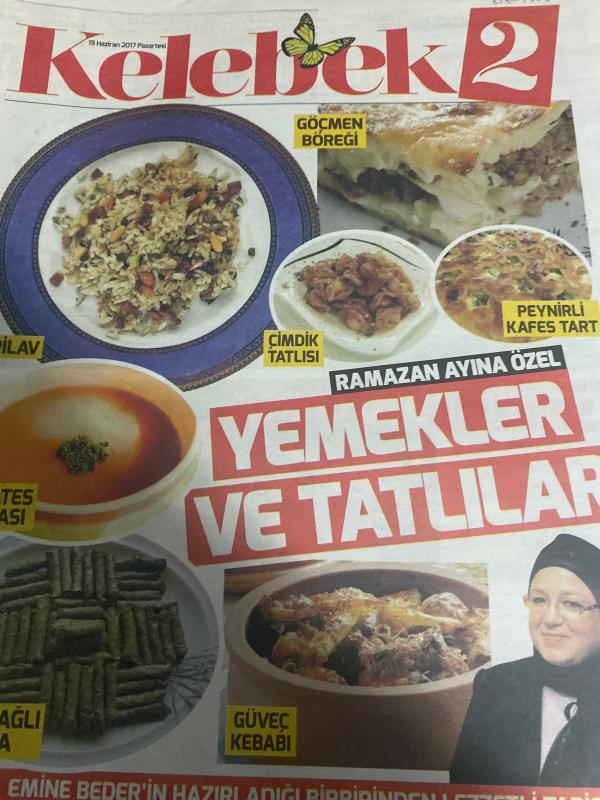 HÜRRİYET GAZETESİ HÜRRİYET KELEBEK 2 GAZETESİ DOĞUM GÜNÜ GAZETESİ - 19 Haziran 2017 - Emine Bederin hazırladığı birbirinden lezzetli tarifler-iç pilav tarifi-göçmen böreği tarifi-peynirli kafes tart tarifi-zeytinyağlı sarma tarifi-güveç kebabı tarifi-alinazik tarifi-cevizli rulo çörek tarifi-kırmızı mercimek çorbası tarifi-vişneli krem karamel tarifi-hürriyet kitap adlı eser, Kitap > Süreli Yayınlar > Gazeteler > Türkiye > Genel > Günlük kategorisinde İkinci El olarak satıştadır.