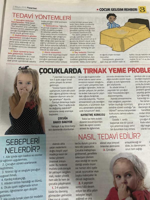 HÜRRİYET GAZETESİ HÜRRİYET KELEBEK 2 GAZETESİ DOĞUM GÜNÜ GAZETESİ - 2 Mayıs 2016 - çocuk gelişim rehberi-bebeklikten ergenliğe-psikoterapist doktor obengül ejder-çocuklarda alt islatma problemi-altta psikolojik nedenler yatabilir-doğru tuvalet eğitimi çok önemli-çocuklarda tırnak yeme problemi-çocuklarda parmak emme problemi-çocuklar ve hayali arkadaş-çocuklar neden yalan söyler çocuklarda çalma davranışı-10’lar hırsız olamazlar-hırsızlık nedenleri-patolojik olmayan hırsızlık-çocuklarda depresyona girebilir-aileye katılan yeni birey kardeş ve kardeş kıskançlığı-çocuklar ailesinin aynısıdır, Sedat Simavi tarafından kaleme alınmıştır. HÜRRİYET GAZETESİ HÜRRİYET KELEBEK 2 GAZETESİ DOĞUM GÜNÜ GAZETESİ - 2 Mayıs 2016 - çocuk gelişim rehberi-bebeklikten ergenliğe-psikoterapist doktor obengül ejder-çocuklarda alt islatma problemi-altta psikolojik nedenler yatabilir-doğru tuvalet eğitimi çok önemli-çocuklarda tırnak yeme problemi-çocuklarda parmak emme problemi-çocuklar ve hayali arkadaş-çocuklar neden yalan söyler çocuklarda çalma davranışı-10’lar hırsız olamazlar-hırsızlık nedenleri-patolojik olmayan hırsızlık-çocuklarda depresyona girebilir-aileye katılan yeni birey kardeş ve kardeş kıskançlığı-çocuklar ailesinin aynısıdır adlı eser Türkçe dilindedir.