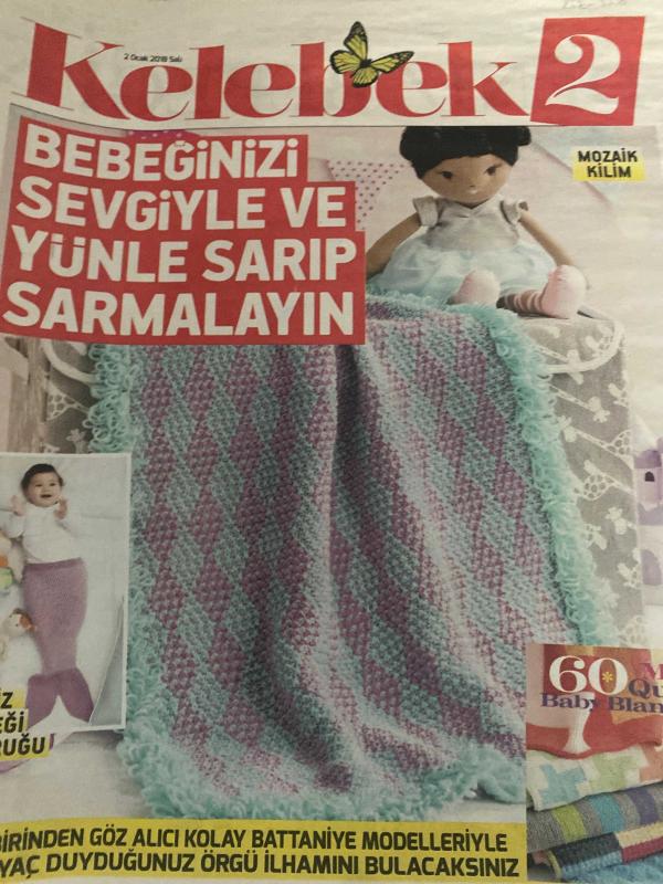 HÜRRİYET GAZETESİ HÜRRİYET KELEBEK 2 GAZETESİ DOĞUM GÜNÜ GAZETESİ - 2 Ocak 2018 - deniz bebeği kuyruğu-Bebeğinizi sevgiyle ve yünle sarıp sarmalayın-birbirinden gözalıcı kolay battaniye modelleri ile ihtiyaç duyduğunuz örgü ilhamını bulacaksınız-deniz bebeği kuyruğu yapımı-mozaik kilim-battaniye-çerçeve, Sedat Simavi tarafından kaleme alınmıştır. HÜRRİYET GAZETESİ HÜRRİYET KELEBEK 2 GAZETESİ DOĞUM GÜNÜ GAZETESİ - 2 Ocak 2018 - deniz bebeği kuyruğu-Bebeğinizi sevgiyle ve yünle sarıp sarmalayın-birbirinden gözalıcı kolay battaniye modelleri ile ihtiyaç duyduğunuz örgü ilhamını bulacaksınız-deniz bebeği kuyruğu yapımı-mozaik kilim-battaniye-çerçeve adlı eser Türkçe dilindedir.
