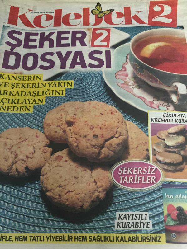 HÜRRİYET GAZETESİ HÜRRİYET KELEBEK 2 GAZETESİ DOĞUM GÜNÜ GAZETESİ - 25 Ekim 2017 - şeker dosyası iki-kanserin ve şekerin yakın arkadaşlılığını açıklayan beş neden-şekersiz tarifler-kayısılı kurabiye tarifi-çikolata kremalı kurabiye tarifi-Cocoon makaron tarifi-kayısılı bar tarifi-damla çikolatalı kurabiye tarifi-yaban mersinli küçük kek tarifi-bademli kartopu tarifi-yulaflı kuru üzümlü küçük kek tarifi-, Sedat Simavi tarafından kaleme alınmıştır. HÜRRİYET GAZETESİ HÜRRİYET KELEBEK 2 GAZETESİ DOĞUM GÜNÜ GAZETESİ - 25 Ekim 2017 - şeker dosyası iki-kanserin ve şekerin yakın arkadaşlılığını açıklayan beş neden-şekersiz tarifler-kayısılı kurabiye tarifi-çikolata kremalı kurabiye tarifi-Cocoon makaron tarifi-kayısılı bar tarifi-damla çikolatalı kurabiye tarifi-yaban mersinli küçük kek tarifi-bademli kartopu tarifi-yulaflı kuru üzümlü küçük kek tarifi- adlı eser Türkçe dilindedir.