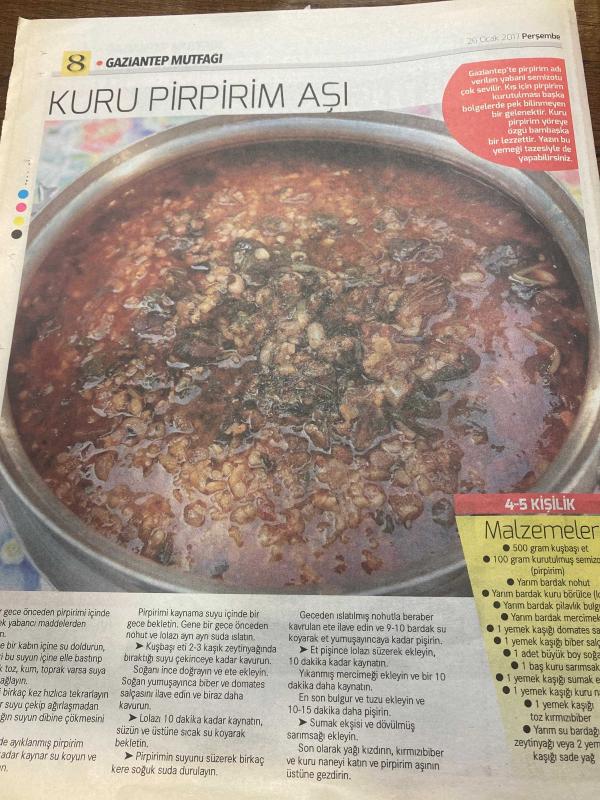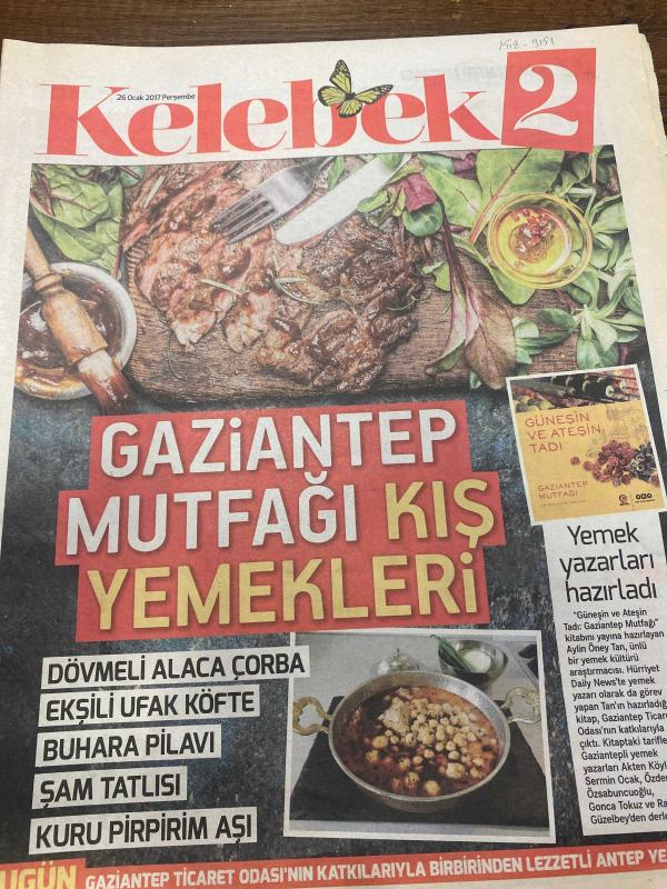 HÜRRİYET GAZETESİ HÜRRİYET KELEBEK 2 GAZETESİ DOĞUM GÜNÜ GAZETESİ - 26 Ocak 2017 - Gaziantep ticaret odasının katkılarıyla birbirinden lezzetli antep yemekleri-Gaziantep mutfağı kış yemekleri tarifi-Dövmeli alaca çorba tarifi-ekşili ufak köfte tarifi-Buhara pilavı tarifi-Şam tatlısı tarifi-Kuru pirpirim aşı tarifi, Sedat Simavi tarafından kaleme alınmıştır. HÜRRİYET GAZETESİ HÜRRİYET KELEBEK 2 GAZETESİ DOĞUM GÜNÜ GAZETESİ - 26 Ocak 2017 - Gaziantep ticaret odasının katkılarıyla birbirinden lezzetli antep yemekleri-Gaziantep mutfağı kış yemekleri tarifi-Dövmeli alaca çorba tarifi-ekşili ufak köfte tarifi-Buhara pilavı tarifi-Şam tatlısı tarifi-Kuru pirpirim aşı tarifi adlı eser Türkçe dilindedir.