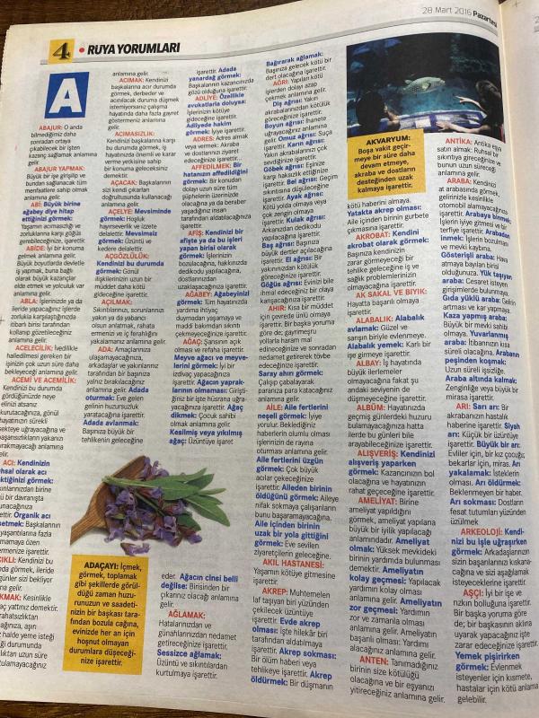 HÜRRİYET GAZETESİ HÜRRİYET KELEBEK 2 GAZETESİ DOĞUM GÜNÜ GAZETESİ - 28 Mart 2016 - rüyaların dili çözülüyor- burç yorumları-uğurlu sayısı beş olanlar-uğurlu sayısı yedi olanlar-uğurlu sayısı sekiz olanlar-uğurlu sayısı dokuz olanlar-uğurlu sayısı altı olanlar-numeroloji nedir-çağdaş yorumlarıyla madde madde açıklamalar rüyalarınıza anlam verecek-rüyaların yararları nedir-rüyalar üzerine-rüya nasıl yorumlanır-rüyalarda zaman var mıdır-rüya esnasında görme duyusunun fonksiyonu nedir-neden ralarımızın yorumlanmasını isteriz-rüyalar neden çabuk unutuluyor-kabus ile rüya arasındaki fark nedir- rüyaların doğruluk derecesi nedir-akvaryum-adaçayı-rüyaları ne zaman ve ne sıklıkla görürüz-bahçe-balık-koç burcu-koç burcu kadını-koç burcu kadını ve erkek-koç burcu erkeği-koç burcu erkeği ve kadın-koç Burcu’nun yıl içindeki iş hayatı-- boğa burcu-boğa burcu kadını-Boğa burcu kadını ve erkek-boğa burcu erkeği-Boğa burcu erkeği ve kadın, Sedat Simavi tarafından kaleme alınmıştır. HÜRRİYET GAZETESİ HÜRRİYET KELEBEK 2 GAZETESİ DOĞUM GÜNÜ GAZETESİ - 28 Mart 2016 - rüyaların dili çözülüyor- burç yorumları-uğurlu sayısı beş olanlar-uğurlu sayısı yedi olanlar-uğurlu sayısı sekiz olanlar-uğurlu sayısı dokuz olanlar-uğurlu sayısı altı olanlar-numeroloji nedir-çağdaş yorumlarıyla madde madde açıklamalar rüyalarınıza anlam verecek-rüyaların yararları nedir-rüyalar üzerine-rüya nasıl yorumlanır-rüyalarda zaman var mıdır-rüya esnasında görme duyusunun fonksiyonu nedir-neden ralarımızın yorumlanmasını isteriz-rüyalar neden çabuk unutuluyor-kabus ile rüya arasındaki fark nedir- rüyaların doğruluk derecesi nedir-akvaryum-adaçayı-rüyaları ne zaman ve ne sıklıkla görürüz-bahçe-balık-koç burcu-koç burcu kadını-koç burcu kadını ve erkek-koç burcu erkeği-koç burcu erkeği ve kadın-koç Burcu’nun yıl içindeki iş hayatı-- boğa burcu-boğa burcu kadını-Boğa burcu kadını ve erkek-boğa burcu erkeği-Boğa burcu erkeği ve kadın adlı eser Türkçe dilindedir.