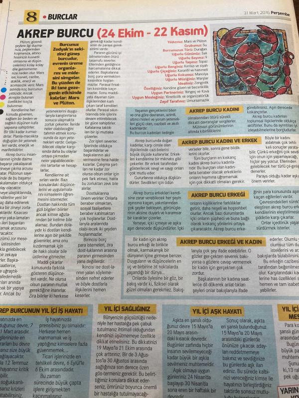 HÜRRİYET GAZETESİ HÜRRİYET KELEBEK 2 GAZETESİ DOĞUM GÜNÜ GAZETESİ - 31 Mart 2016 - rüyaların dili çözülüyor-terazi ve akrep burç yorumları-kahve-kamyon-ko-kapı-kar-kanalizasyon-lohusa-lisan-lokum-nafaka-naftalin-nakış-nane-nal-öküz-olta-martı-makarna-odun-resim-patlıcan-Terazi burcu- kadın terazi Burcu’nun yıl içi iş hayatı-terazi Burcu’nun yıl içi aşk hayatı-akrep burcu-akrep burcu kadını-akrep burcu-akrep burcu erkeği ve kadın-Antep Burcu’nun yıl içi iş hayatı adlı eser, Kitap > Süreli Yayınlar > Gazeteler > Türkiye > Genel > Günlük kategorisinde İkinci El olarak satıştadır.